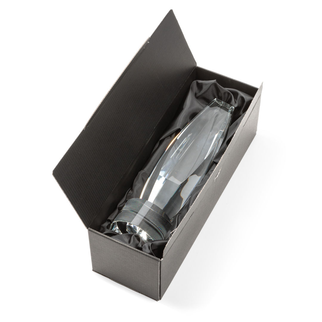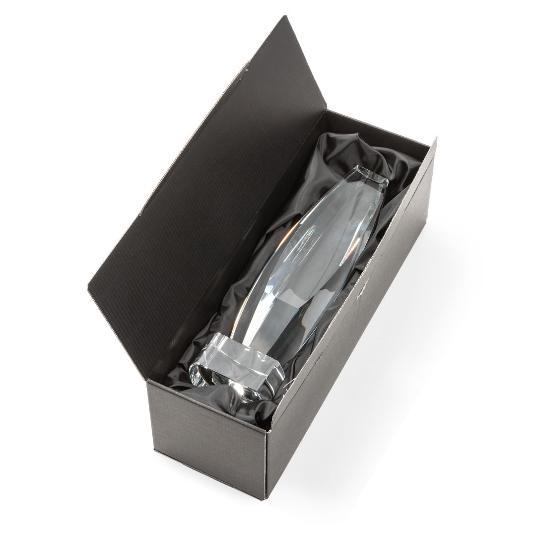 Our exquisite Optical Crystal Golf Ball Award is a timeless tribute to the passion and skill of golfers. The centerpiece of this masterpiece is a flawlessly crafted Optical Crystal Golf Ball that captures and refracts light in a mesmerizing display. Mounted on a complimenting Optical base for personalization with a Logo or Name. This stunning piece of artistry embodies precision and elegance, making it the perfect award or keepsake for golf enthusiasts, tournaments, or special occasions. 2.375″ W x 3.625″ H x 2.375″ D