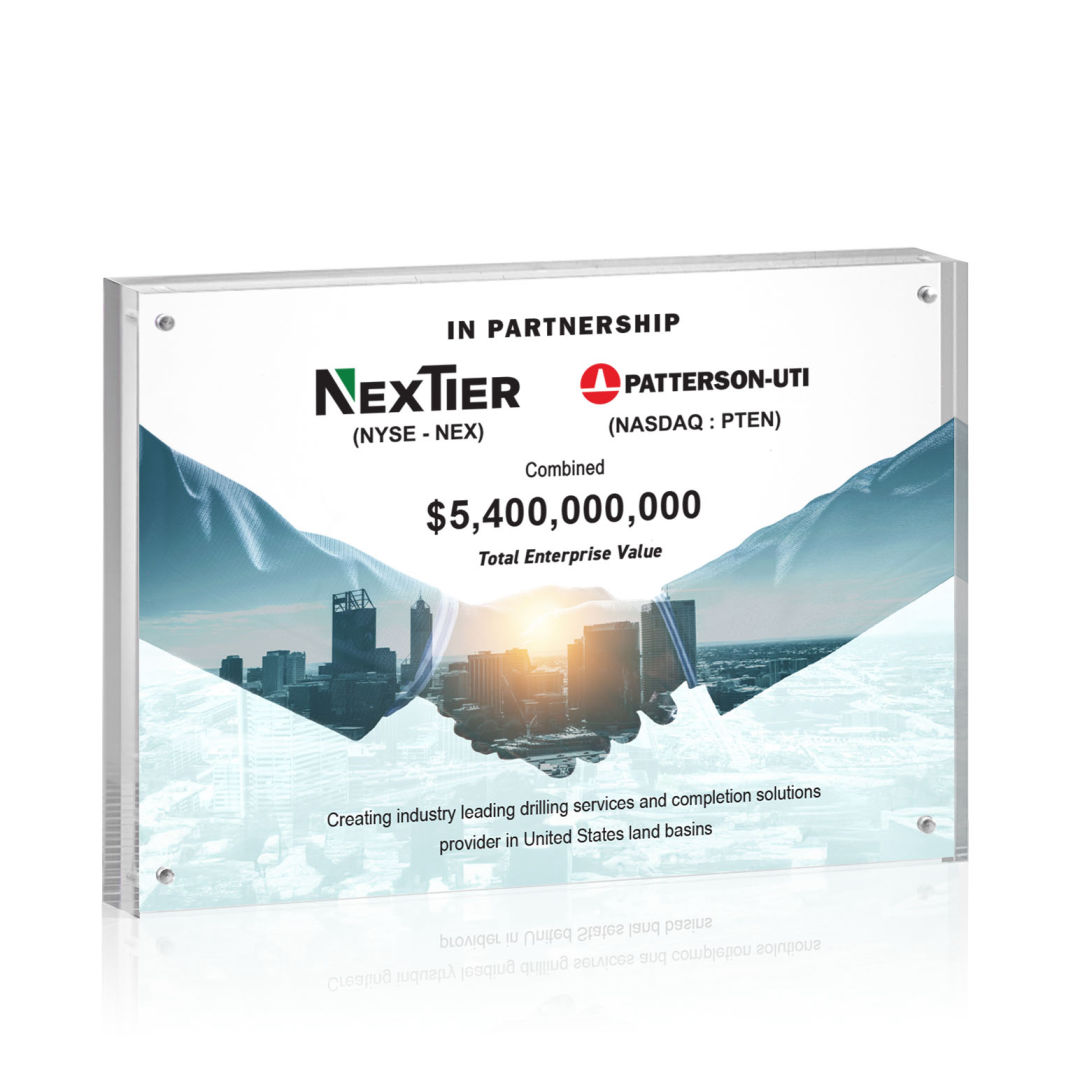 The elegant Imperial Award reflects a 0.75″ thick Starfire Crystal tower and showcases stoic bevels throughout the piece. With an opulent Black base, this striking award is an outstanding recognition gesture. 7.0″ W x 10.75″ H x 3.0″ D