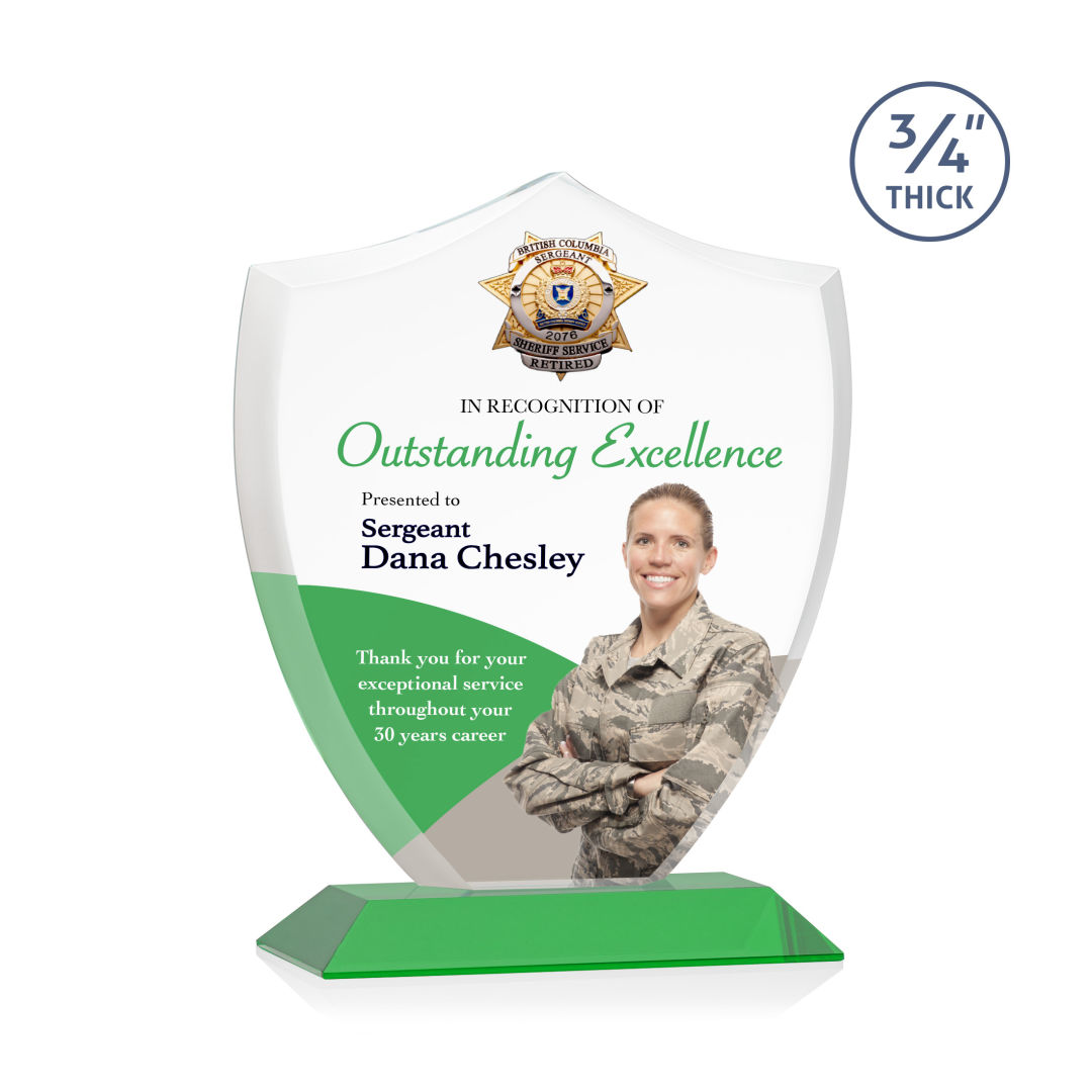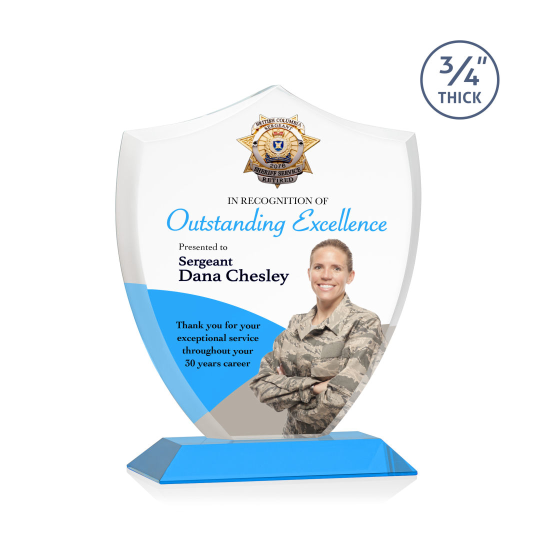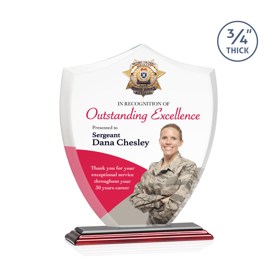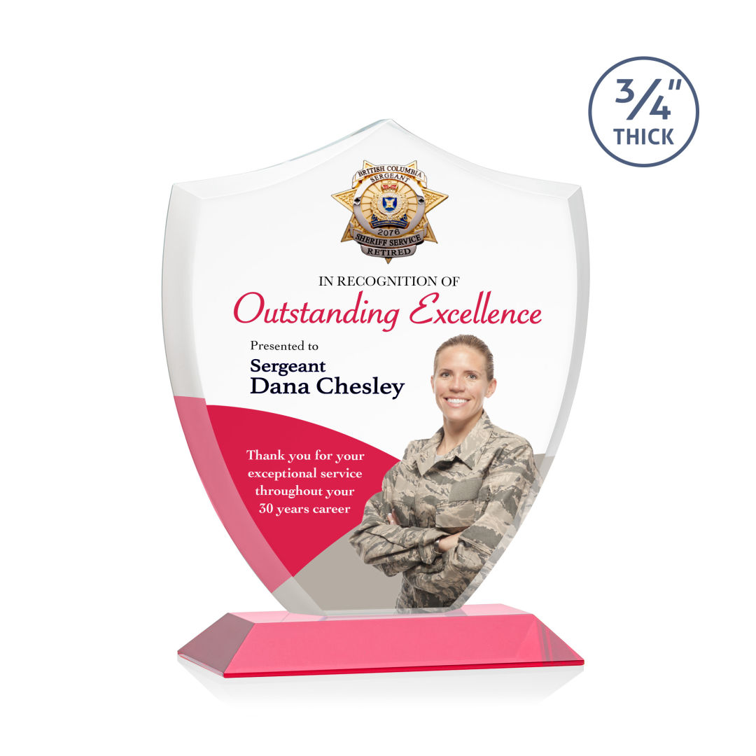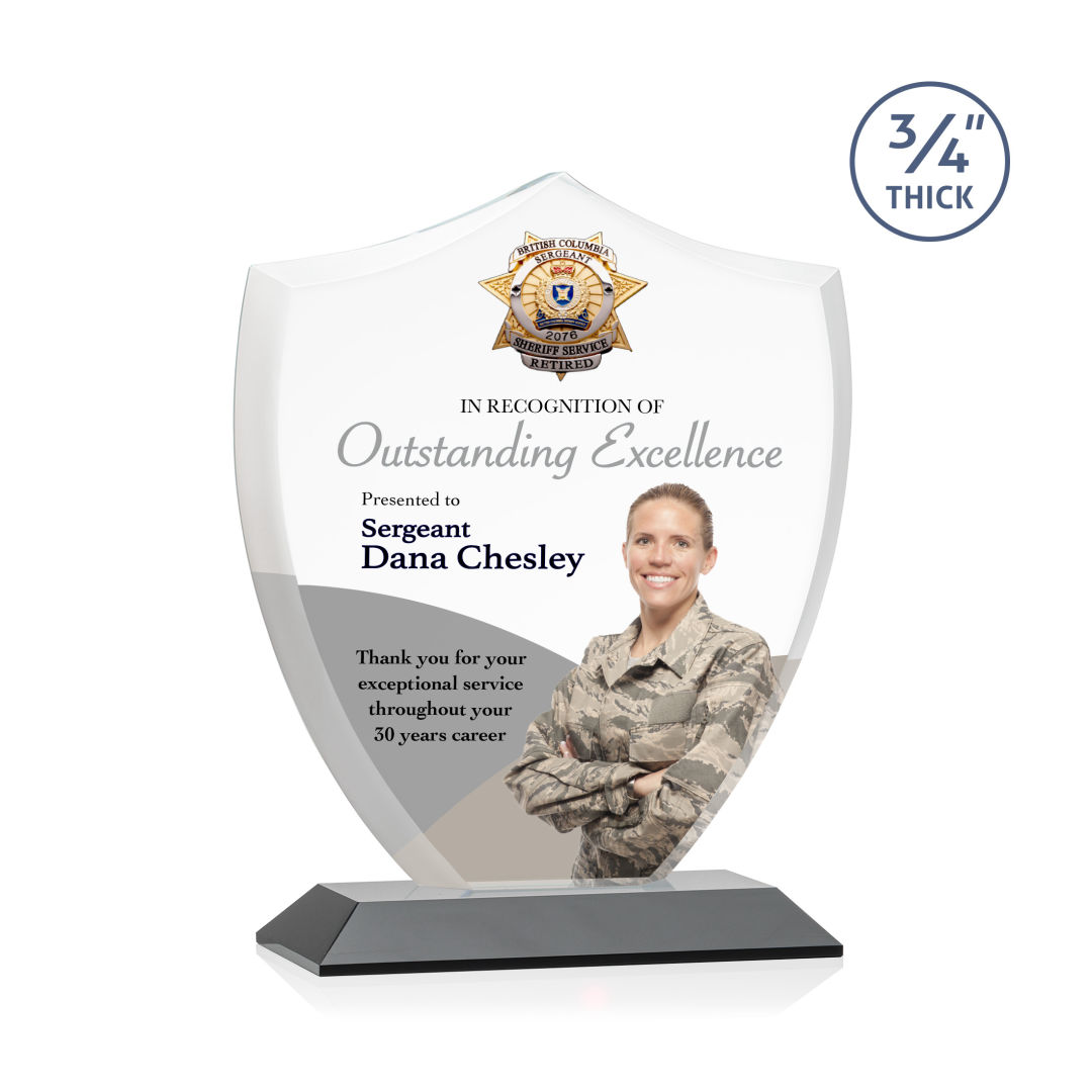 Mark a milestone in your organization with our Starfire Crystal Riviera Anniversary Award. The unique hexagonal design, coupled with beveled edges, creates a modern and sophisticated aesthetic, reflecting the significance of the years served. At the heart of this remarkable award lies captivating prismatic number 30, showcasing the years of significance. Mounted on a clear beveled Starfire Crystal base. 7.0″ W x 6.5″ H x 3.0″ D