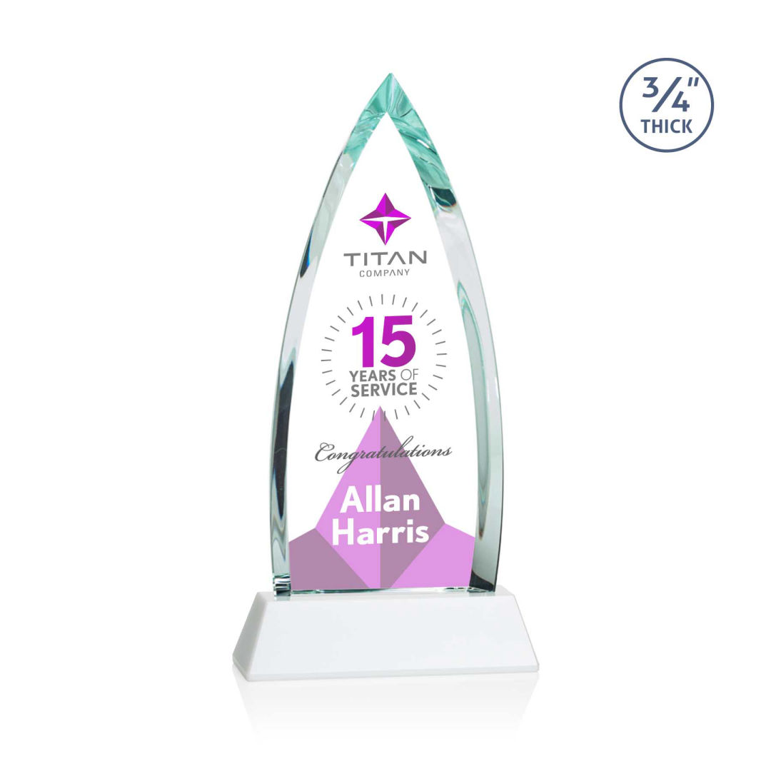 Our stunning Starfire Crystal Sheffield Clock is a masterpiece of elegance and functionality. The clock centerpiece of this award or gift features a meticulously polished silver bezel, a testament to precision and refinement. Mounted on your choice of clear or colored tapered crystal base that allows the clock to stand proudly, showcasing its beauty from every angle. This clock is an ideal choice for commemorating milestones in business, leadership, or as a simple token of appreciation. Second position imprint optional. 7.0″ W x 8.875″ H x 2.0″ D