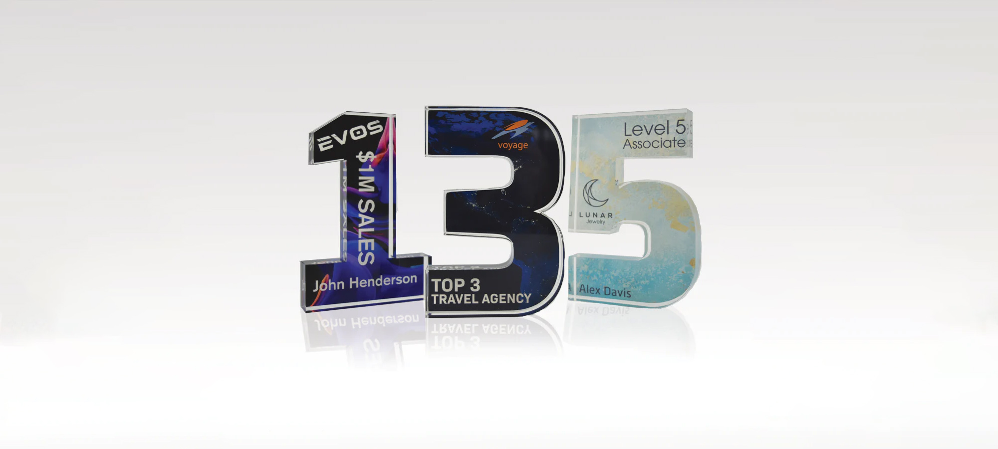 - Acrylic Numbers: Transform service anniversaries into unforgettable moments with our elegant acrylic numerals. Each numeral is meticulously crafted, symbolizing years of dedication and commitment.