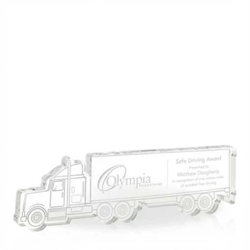 Perfect for corporate recognition in transportation and logistics, this acrylic semi-truck award suits employee milestones, safe driving honors, or industry achievements. It also works for sports team recognitions with a trucking theme, academic awards in vocational programs, or general business presentations.