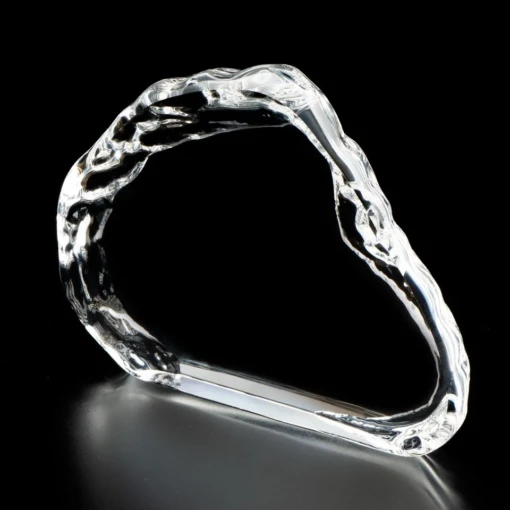 This Iceberg inspired award features a high polished flat bottom with molded vertical surfaces, with one side flat and the other side slightly curved. These awards are perfect for Abrasive Etching with or without Colorfill, UV Printing, or Co2 Laser Engraving. Molded Icebergs are however not suitable for sub surface Laser Engraving. Each Iceberg comes in a premium quality Black presentation box. 5.1″ H x 7.1″ W x 1.4″ D