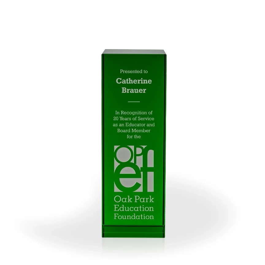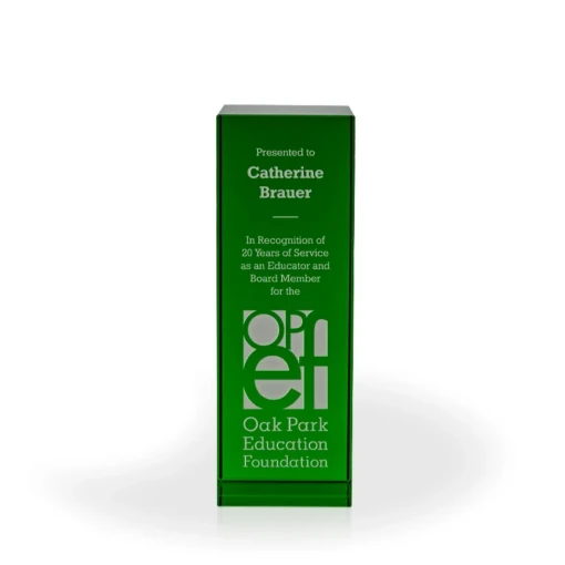 The multi-sized Alexis Crystal Award is a versatile option for recognizing many different levels of achievement in your organization. The flawless optic crystal tower is made in a square shaped column that comes in several heights and colors. 9″ H x 3.125″ W x 3.125″ D
