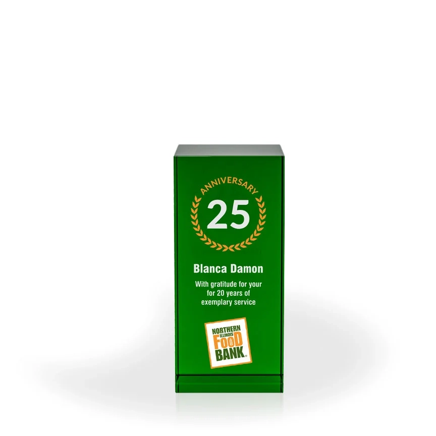 The multi-sized Alexis Crystal Award is a versatile option for recognizing many different levels of achievement in your organization. The flawless optic crystal tower is made in a square shaped column that comes in several heights and colors. 7″ H x 3.125″ W x 3.125″ D