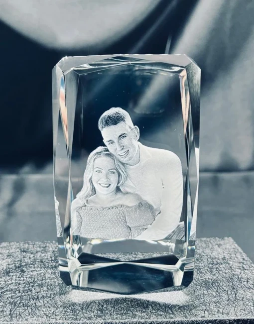 The Clear Optic Crystal Block “Amira Diamond Edge Block” is made out of highest grade K9 crystal. The Amira Diamond Edge Block can be customized with your personal picture, logos and messages. Each comes in a premium quality presentation box. These awards are available as a blank for engravers, or if you prefer we can do the engraving for you. 3.15″ H x 2″ W x 2″ D