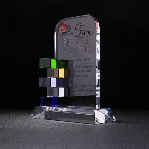Our Optic Crystal “Arabella” Award with it’s colored accents is a real eye catcher. Each Arabella comes in a premium quality presentation box. These awards are available as a blank for engravers, or if you prefer we can do the engraving for you with your image, logo or text. 5.5″ L x 2.5″ W x 7.1″ H