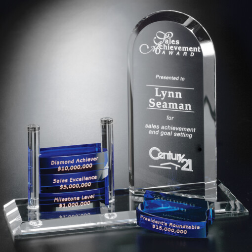 The typical turnaround time for in stock awards is 2–3 weeks, including production and shipping. For rush orders, this timeline can be shortened to 3–5 business days. Contact us early to ensure your crystal awards and engraved trophies arrive on time.