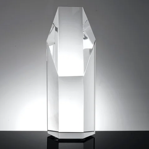 The Atria Tower Award is a perfect hexagon column manufactured from Clear Optic Crystal. It’s large slant cut and a flat front vertical surface provides two locations for artwork and personalization. Each comes in a premium quality presentation box. 3″ L x 2.5″ W x 6″ H