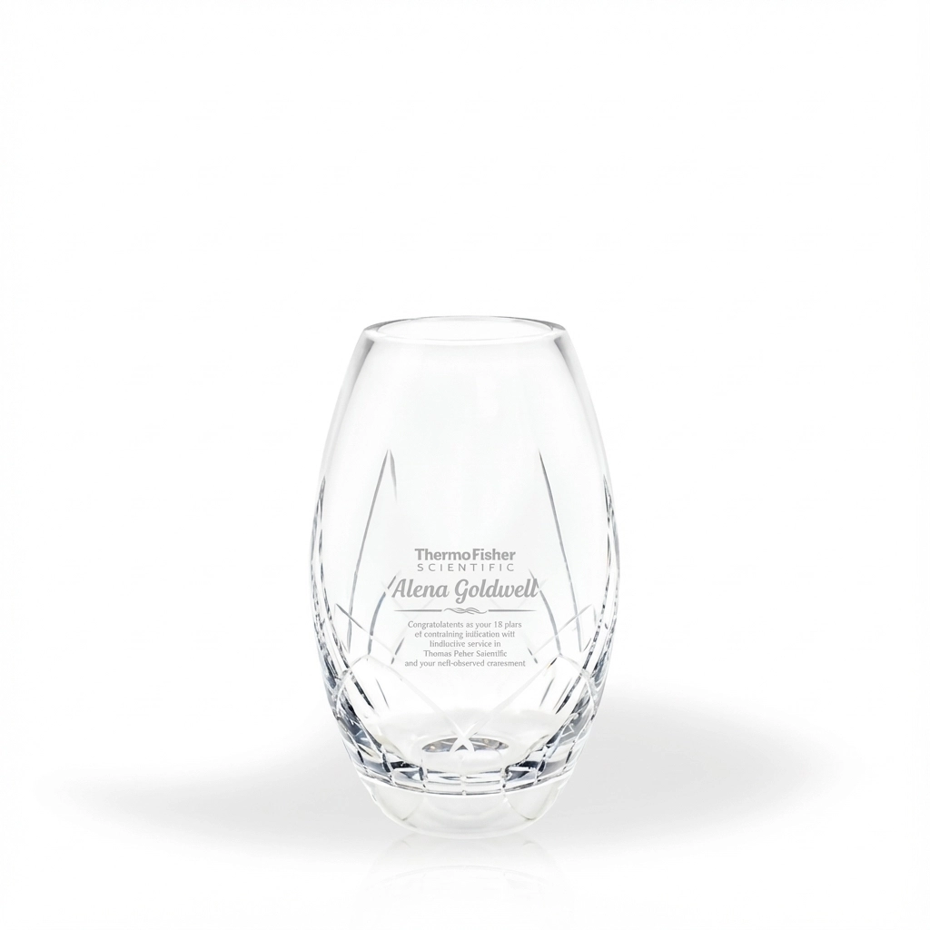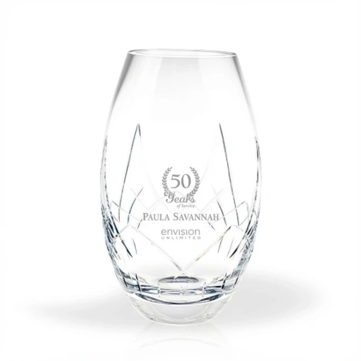 The Atticus Crystal Vase is stunning and makes a perfect award or corporate gift to commemorate single recipients or corporate teams in the workplace. This classic looking, brilliant vase is available in 3 sizes 7″, 9-1/4″ and 12″ . The perfect sizes for displaying in home or office, on your desk or table, especially holding fresh cut flowers. This heavy crystal vase features beautifully cut facets and a space for engraving names, dates, logos or gift/award information. 12″ H x 7″ W x 7″ D