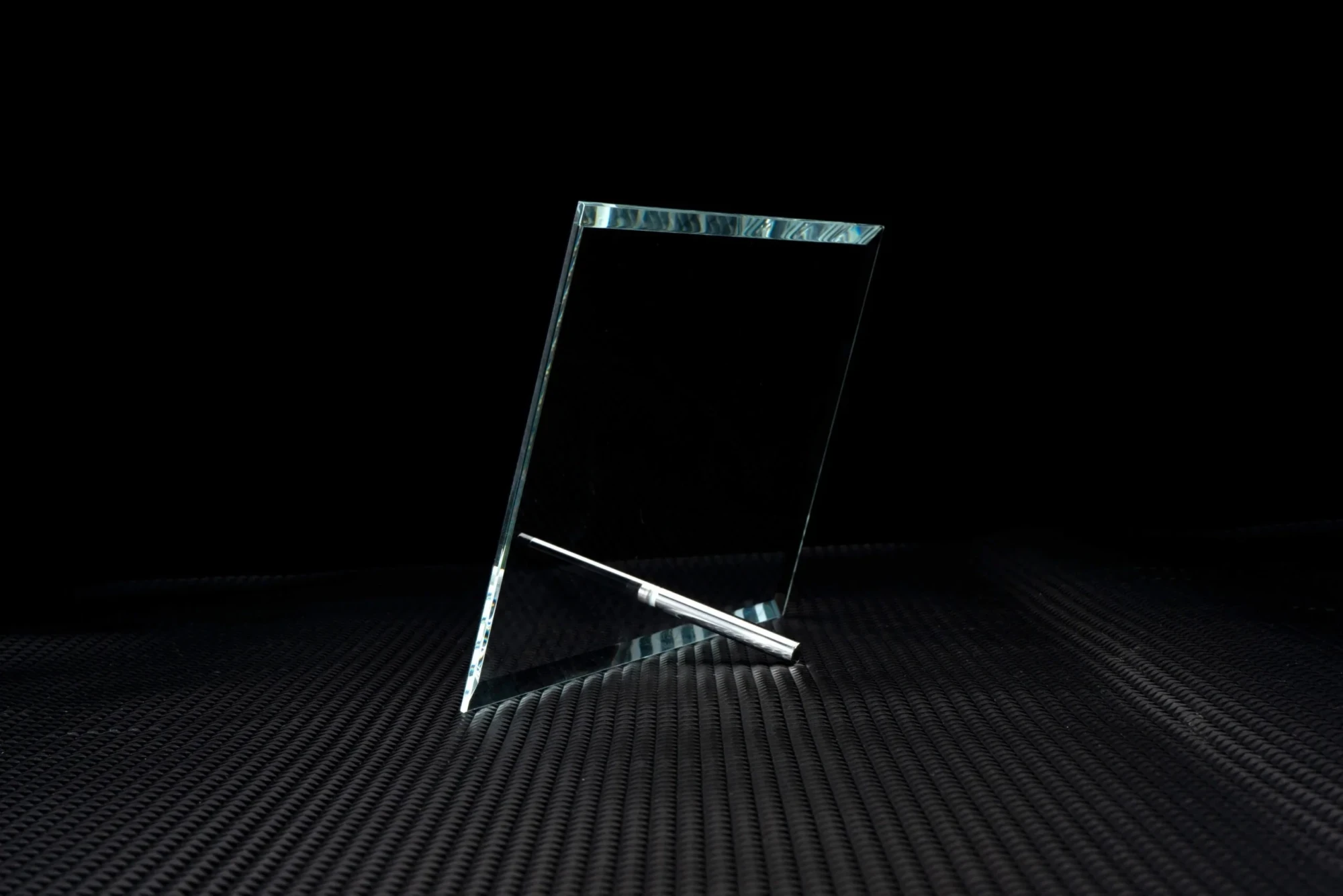 The Aurora Landscape features 1/4″ (6mm) thick Crystal Clear Glass that is perfect for abrasive etching, Co2 Laser engraving, sub surface laser engraving, or UV printing. Each Aurora has either a highly polished edge or steep beveled edges that sparkle. These economical products are very budget friendly. 7″ L x 0.2″ W x 5″ H