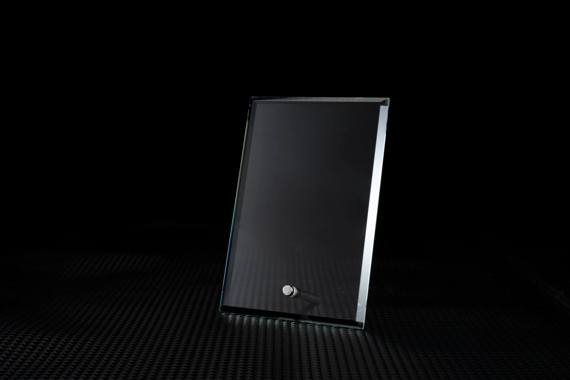 The Aurora Portrait features 1/4″ (6mm) thick Crystal Clear Glass that is perfect for abrasive etching, Co2 Laser engraving, sub surface laser engraving, or UV printing. Each Aurora has either a highly polished edge or steep beveled edges that sparkle. These economical products are very budget friendly. 6″ L x 0.2″ W x 8″ H