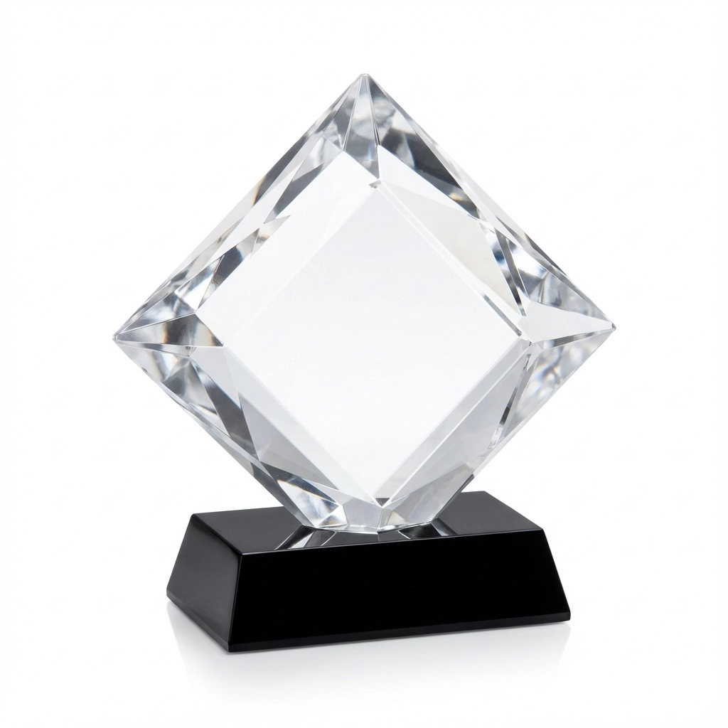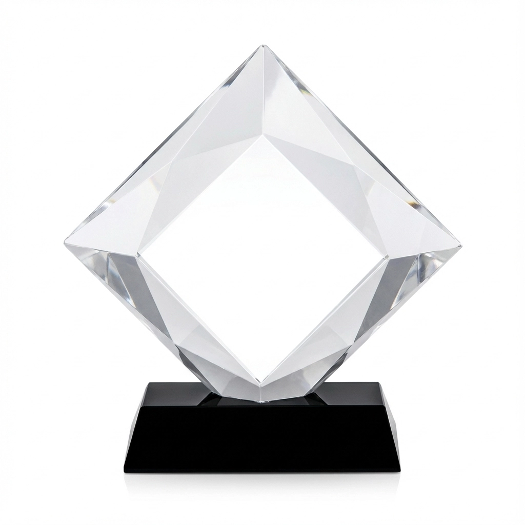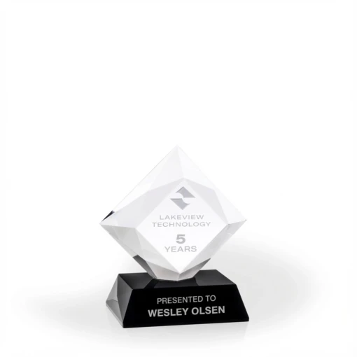 The Avior Crystal Award is the perfect option when you need to commemorate different levels of achievement that are special to your organization. The flawless, clear optic crystal is cut with faceted edges into a square shape and affixed to a customized black base. 4.5625″ H x 4.25″ W x 2.5″ D
