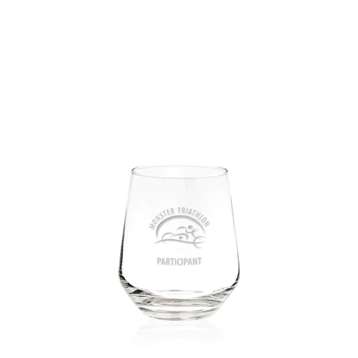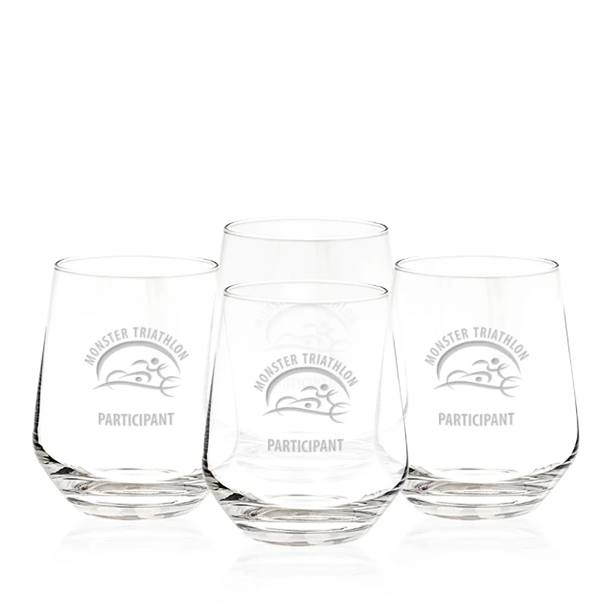 When you need quality yet durable stemless wine glasses, the Bethel Stemlesss Wine Glass is the perfect wine glass choice. This 16 oz. classic, bell shaped wine glass holds just the right amount of wine for capturing aroma and flavors of your favorite wine. The Bethel Stemless Wine Glass is great to use for everyday occasions, but is sophisticated enough for special events. Engrave with logos, names, monograms, or whatever is best suited for your personalization needs.This stemless wine glass is only available in sets of 4. Engraving for all four items will be identical. 4.25″ H x 3.25″ W x 3.25″ D