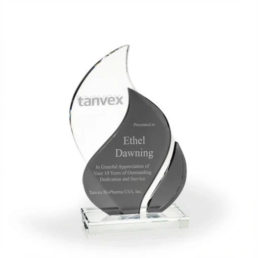 The stunning and elegant Blaze Crystal Flame Award is the perfect option when you need to recognize an extra amazing achievement. This smoked black and crystal clear optic crystal award is a powerful statement to acknowledge your appreciation to a person or team that is vital to your organization’s success, or to recognize specific achievements. 10.75″ H x 6.75″ W x 3″ D