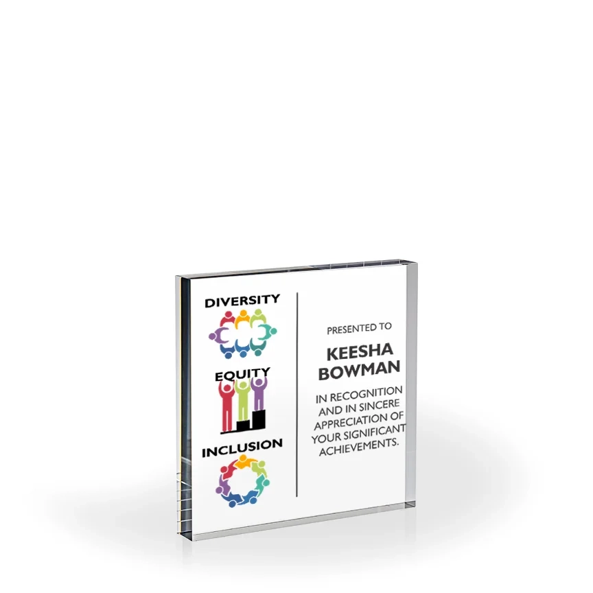 The Block Acrylic Paperweight Award is a high-quality and stylish way to recognize outstanding performances in various fields. Made in the USA from thick, clear acrylic, this minimalist and sleek award is a versatile choice for honoring exceptional individuals or teams in a professional setting. Measuring at 4″ in height, it offers ample space for personalized logos, branding, names, or themes. 4″ H x 4″ W x 0.75″ D