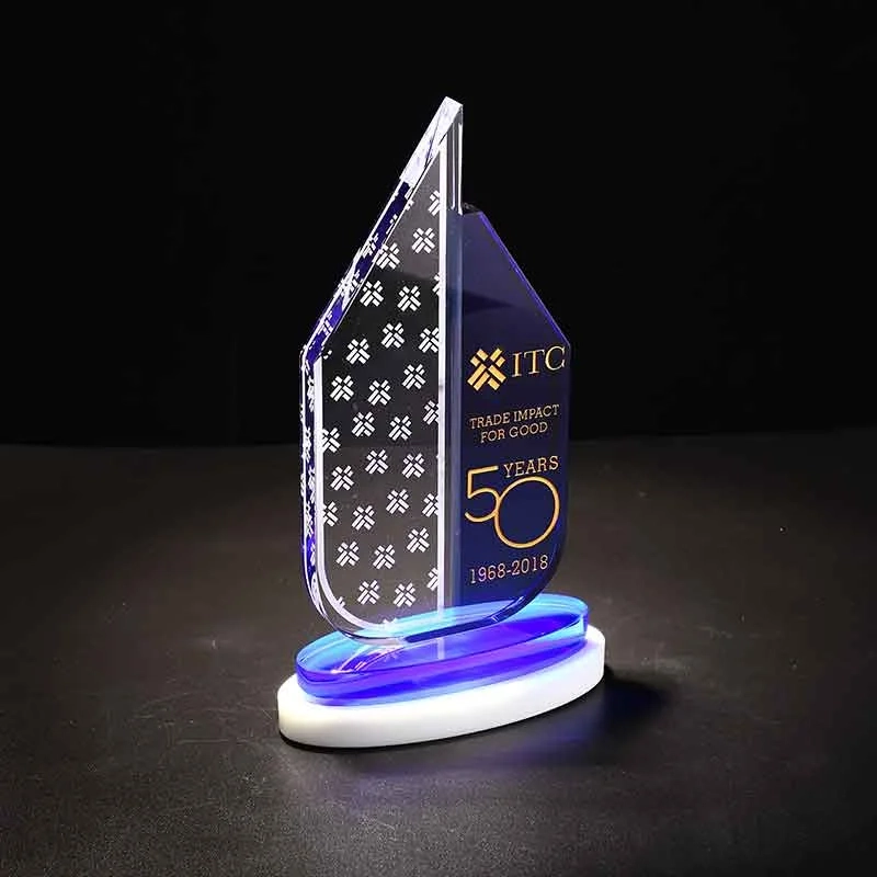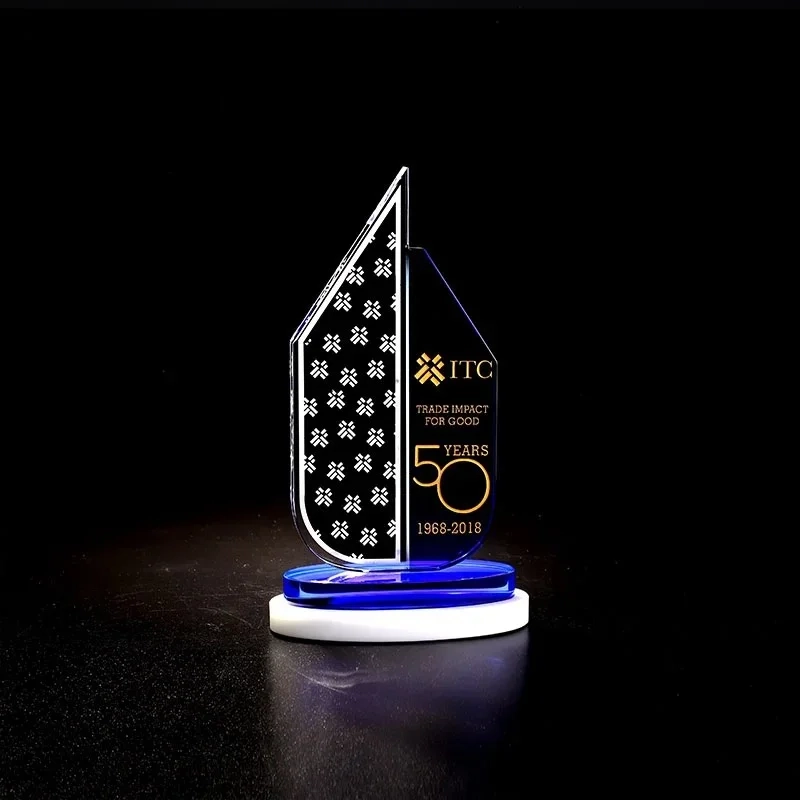 The Bluebot Award is a unique combination of clear, blue and white Optic Crystal all meticulously bonded together. The clear and blue vertical panels are mounted to a blue and white oval base combination. Manufactured from the finest K9 Optic Crystal, each is shipped in a premium quality presentation box. These awards are available as a blank for engravers, or if you prefer we can do the engraving for you. 5.9″ L x 0.6″ W x 10″ H