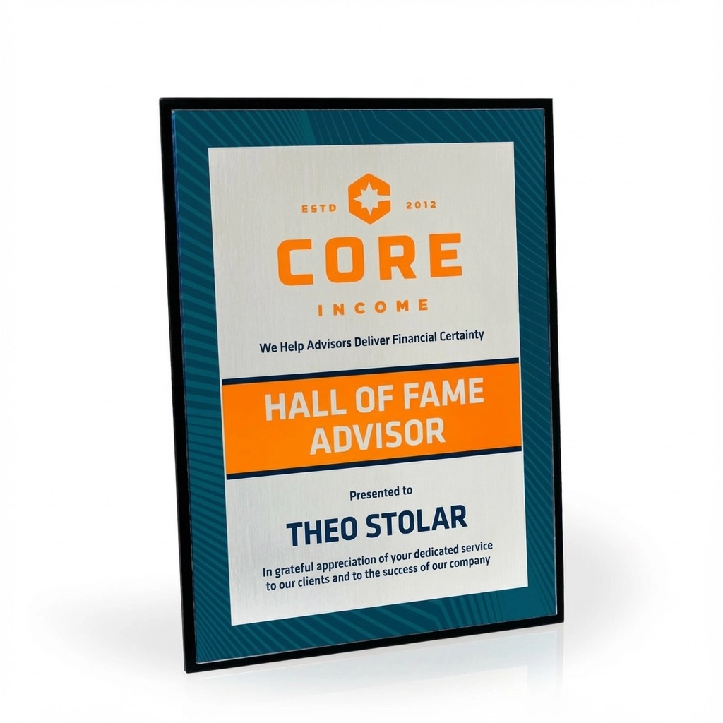 The Bradshaw Award Plaque is an acrylic plaque with a full-color metal plate attached to the front. This is a unique and budget friendly option for every awards program. This plaque is a standard wall size that measures 8″ x 10″. The Bradshaw Plaque is designed to hang vertically and can be printed in a variety of colors to match your brand. It is very popular for Years of Service Awards. 9.5″ H x 7.5″ W x 0.5″ D