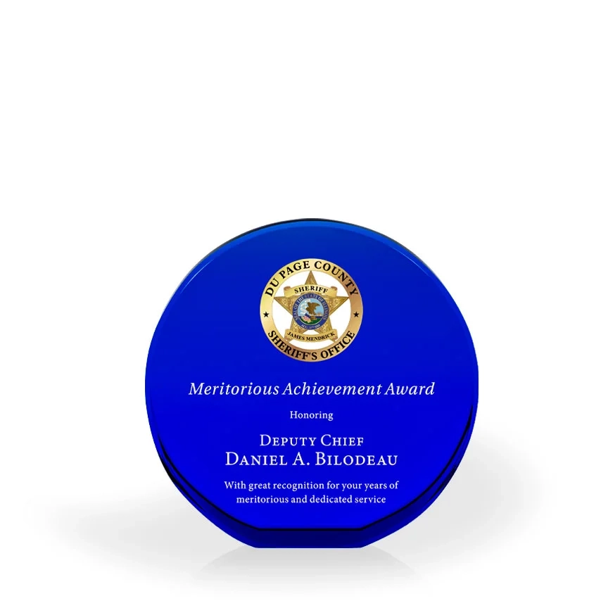 Brielle Blue Crystal Beveled Circle with Flat Bottom, Large – UV Printed
