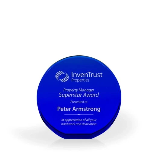 Brielle Blue Crystal Beveled Circle with Flat Bottom, Large