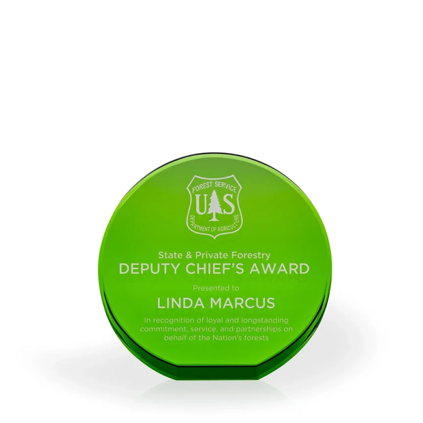 Brielle Green Crystal Beveled Circle with Flat Bottom, Large