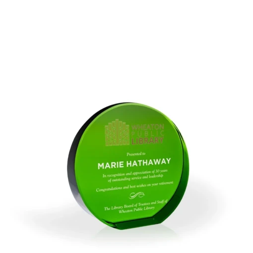 Brielle Green Crystal Beveled Circle with Flat Bottom, Medium – UV Printed