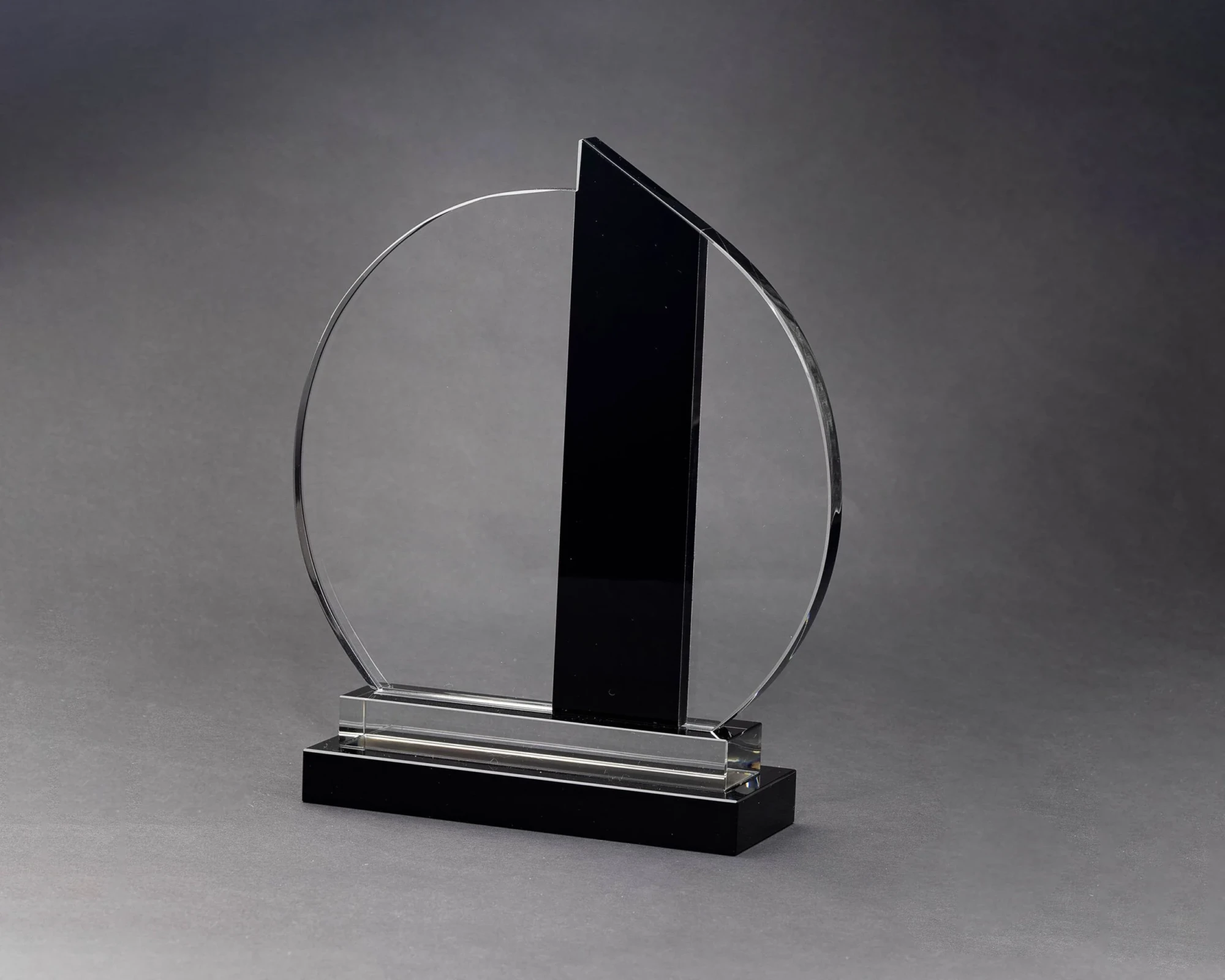 The Brittany Award is a combination of Clear and Black Optic Crystal bonded seamlessly. This award is perfect for abrasive etching and color fill. Each comes in a premium quality presentation box. These awards are available as a blank for engravers, or if you prefer we can do the engraving for you. 8.1″ L x 0.5″ W x 9.8″ H