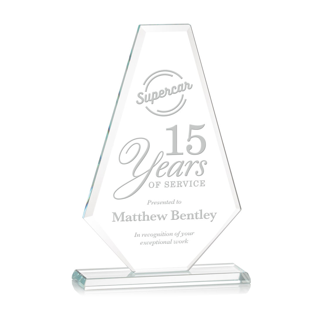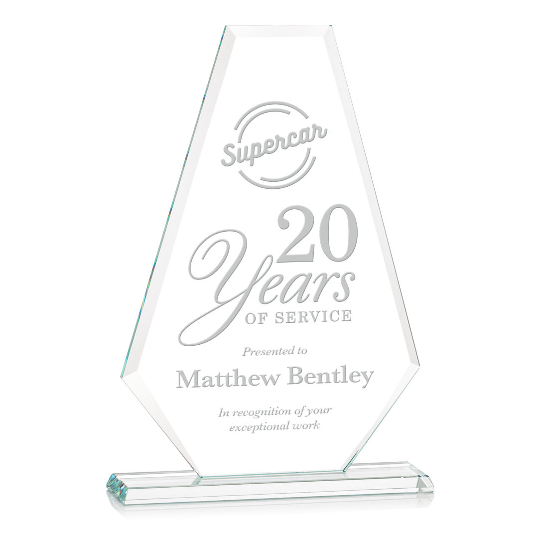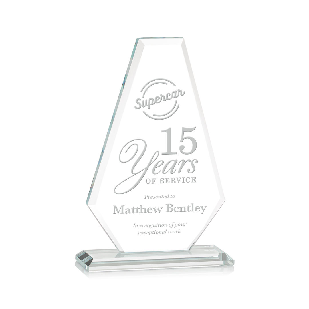 The perfection of Starfire Crystal Caldwell Award is in its symmetrical design, from its squared top which slants off on both ends outward into a beautiful dip at the base. 4.75″ W x 7.75″ H x 0.375″ D