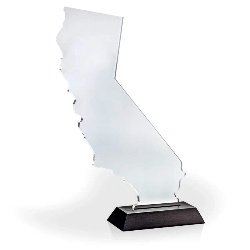 An attractive and affordable award option, our acrylic cutout awards are made in the USA with 1/4″ clear acrylic and a black, beveled wood base. These budget-friendly awards require minor assembly. The acrylic pop-in and wood base are packaged together, un-attached, in a slim-line white tri-fold box. 9.6″ H x 5.4″ W x 2″ D