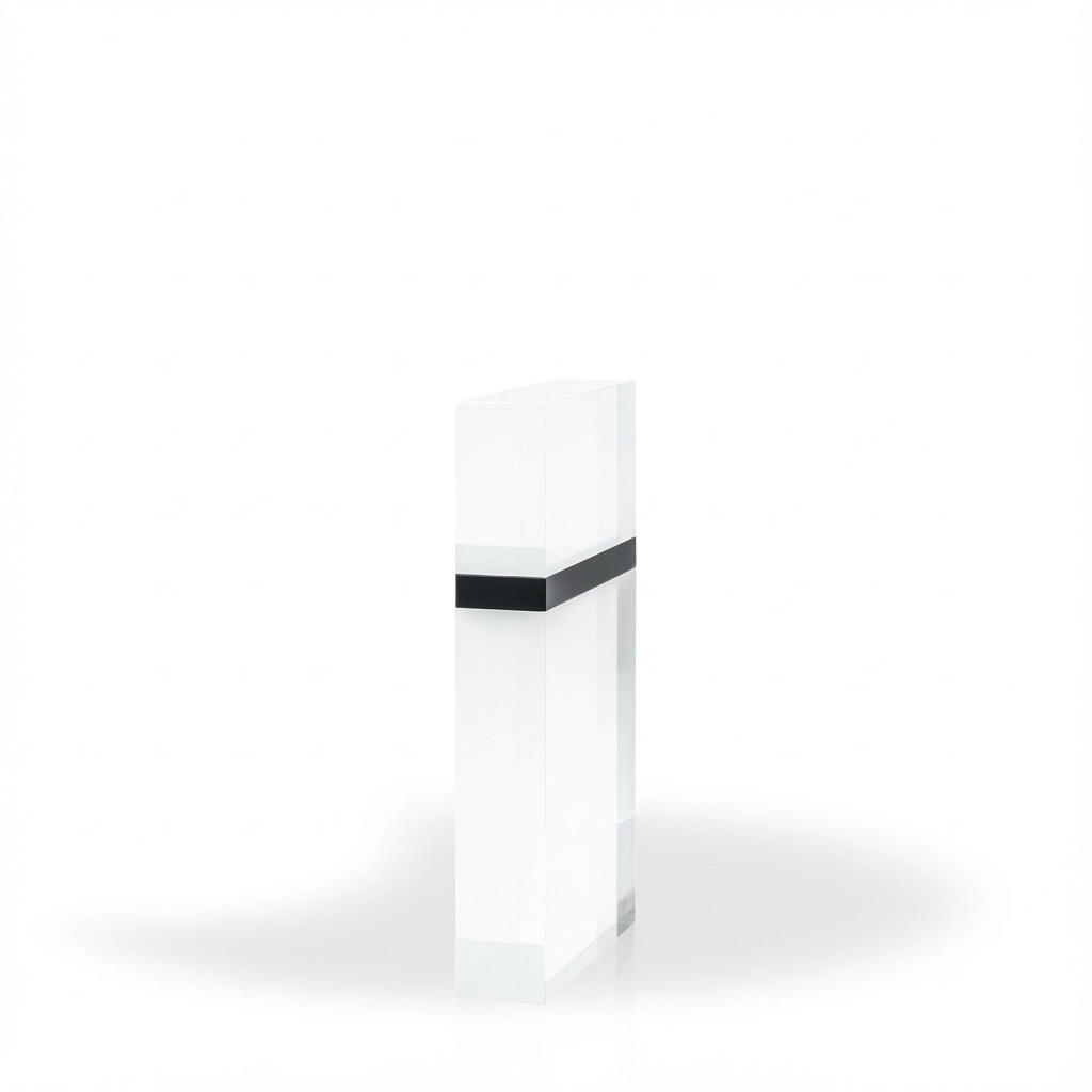 The Capri Black Accent Award is versatile while remaining an elegant desktop display of recognition. Made from clear acrylic, the award features a black accent. The Capri Black Accent Award can be engraved in three different configurations, with the accent on top, or on bottom, or left side of the acrylic main body. 4″ H x 7″ W x 1.25″ D