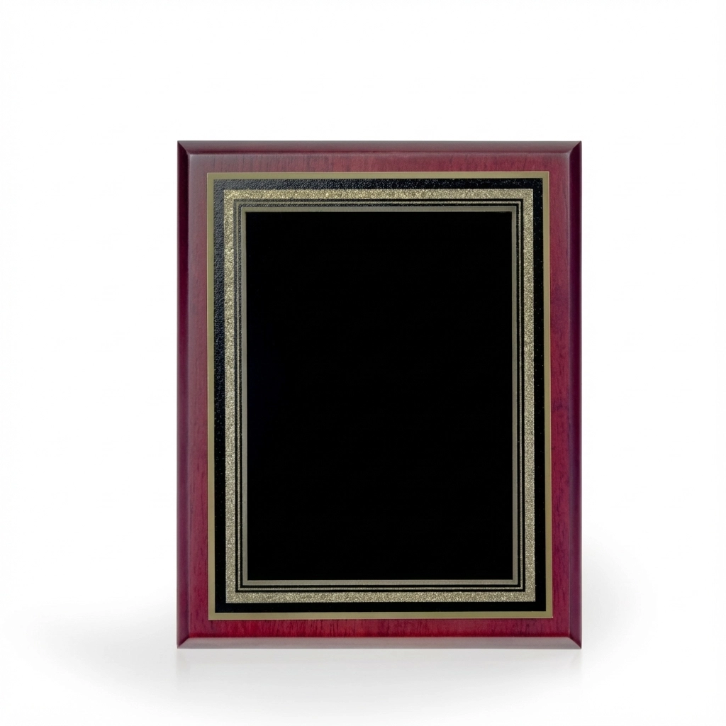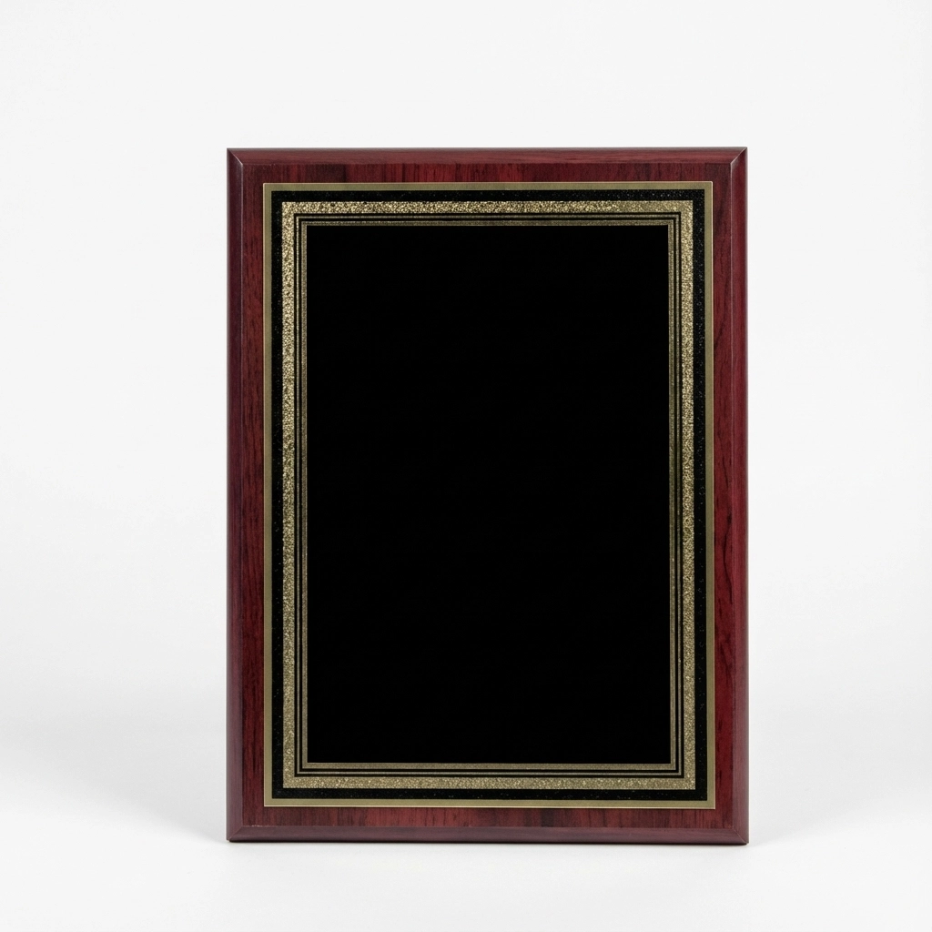 Recognize your employees’ contributions with the Carlos Mahogany Finish Award Plaques. These elegant plaques feature a black engraving plate on a textured back plate, with engraved gold letters that are accented by a textured border. The plaques are available in two sizes and can be hung either vertically or horizontally to suit your space and preference. 10″ H x 8″ W x 0.75″ D