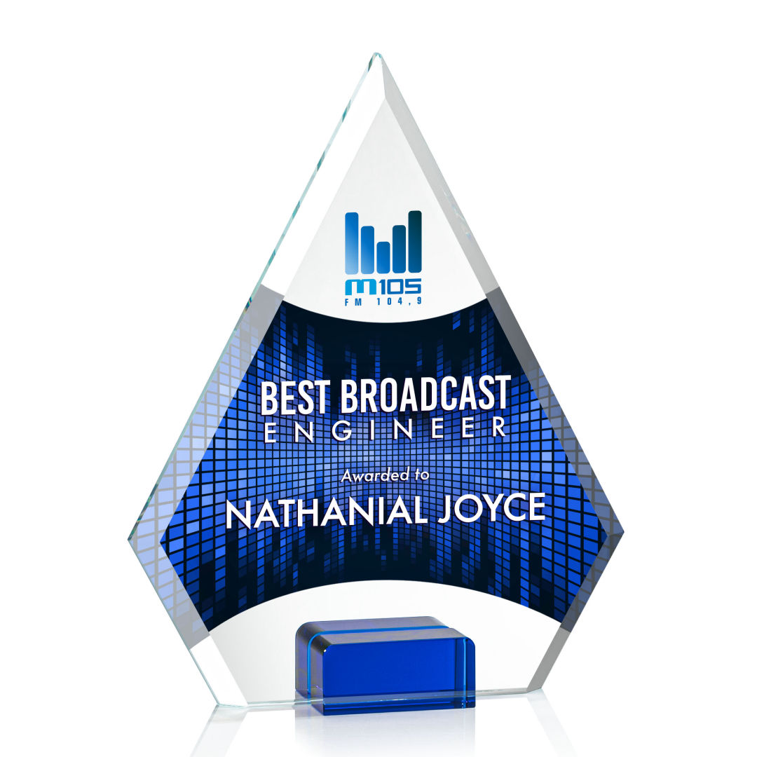 The striking diamond shaped Starfire Crystal Charlotte VividPrint™ Award is a magnificent recognition piece to celebrate a special achievement. Wedged between two panes of sapphire crystal, the Charlotte is a great choice for any corporate recognition programs. 4.5″ W x 5.75″ H