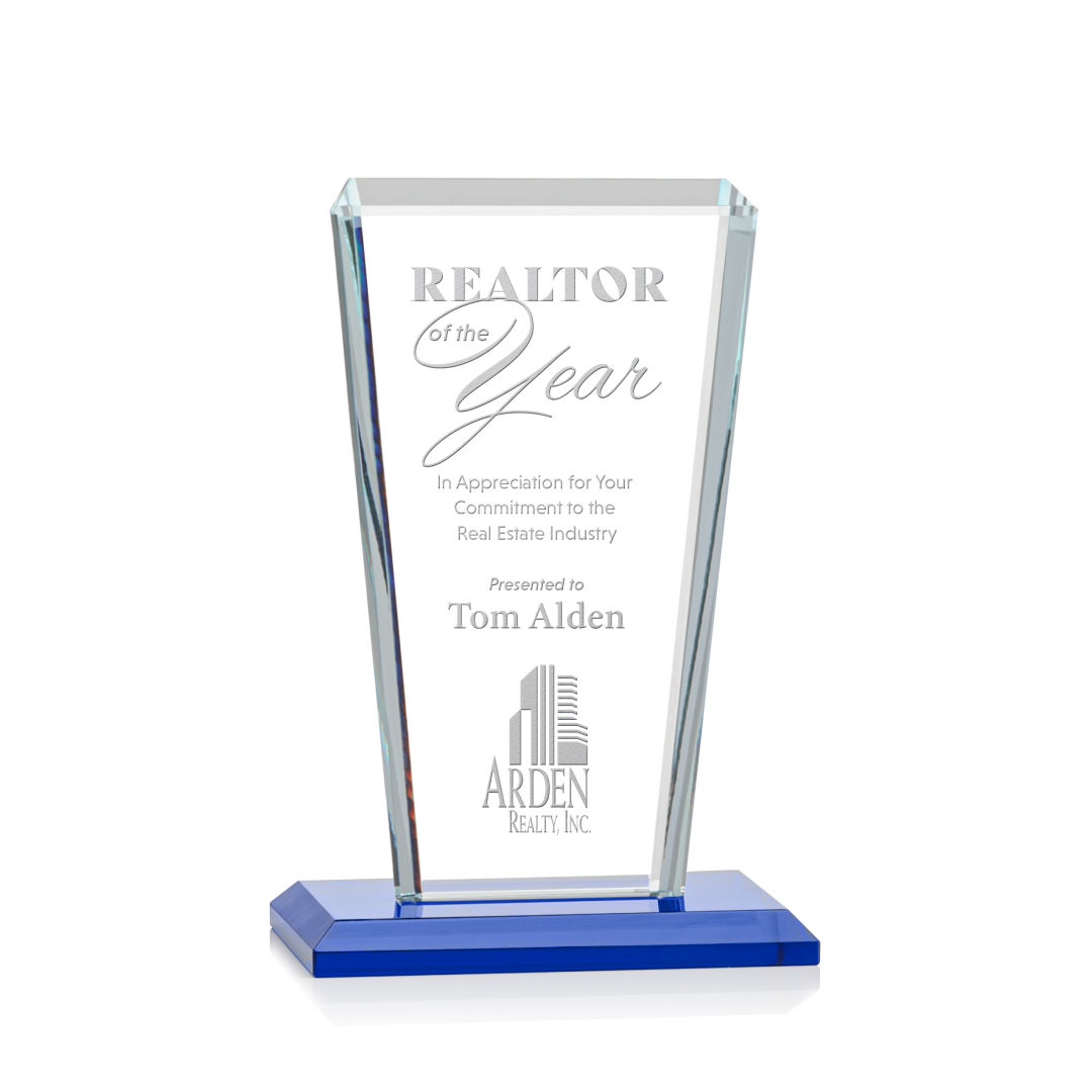 Our extraordinary beveled Starfire angular award is combined with sapphire optical crystal, the latest trend in designer glass, to update a classic look with chic style. 4.0″ W x 5.5″ H x 3.0″ D