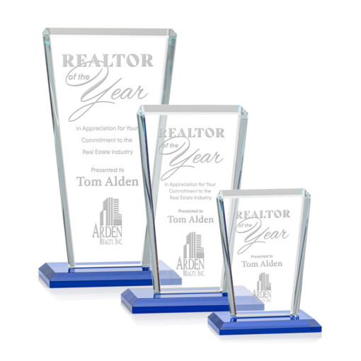 Our extraordinary beveled Starfire angular award is combined with sapphire optical crystal, the latest trend in designer glass, to update a classic look with chic style. 4.0″ W x 5.5″ H x 3.0″ D