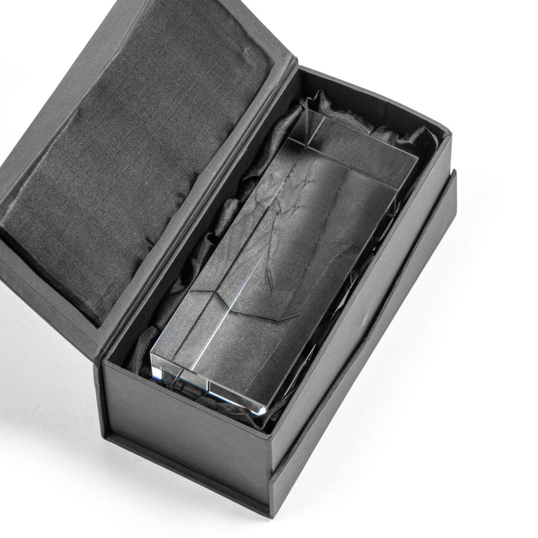 Our extraordinary beveled Starfire angular award is combined with optical crystal, the latest trend in designer glass, to update a classic look with chic style. 4.0″ W x 5.5″ H x 3.0″ D