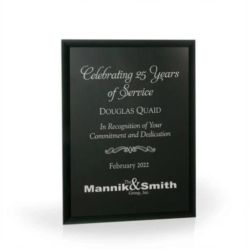 Presenting the Cheval Black Glass Plaque, a sophisticated 9″x12″ masterpiece designed to commemorate outstanding achievements. Crafted from high-quality, polished glass, this plaque exudes an air of timeless elegance and professionalism. Its deep black finish provides a striking contrast, making engraved text and logos pop with exceptional clarity and impact. The substantial size ensures it commands attention, whether displayed on a desk, shelf, or wall, serving as a constant reminder of dedication and success.