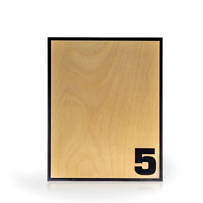 The Collin Award Plaque is an acrylic plaque with a custom cut, maple finish wood panel attached to the front. This is a unique and budget friendly option for every awards program. This plaque is a standard wall size that measures 8″ x 10″. The Collin Plaque is designed to hang vertically and can be printed in a variety of colors to match your brand. It is very popular for Years of Service Awards. Available in 5, 10, 15 20, 25 or other custom number cutouts. 10″ H x 8″ W x 3/4″ D