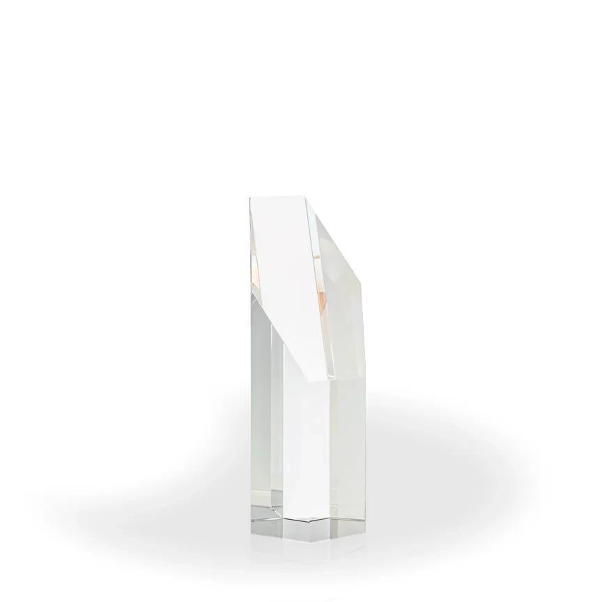 The Compass Crystal Award is a beautiful hexagonal optic crystal column award. The engraving is done on the top slanted face of the award, making it easy to read. It is sure to impress your recipients. This award comes in 3 sizes: 5″ tall, 7.5″ tall and 10″ tall. This is a great family of awards to use when you need multiple sizes of an award for a particular category in your recognition program. 7 1/2″ H x 3″ W x 2 1/4″ D
