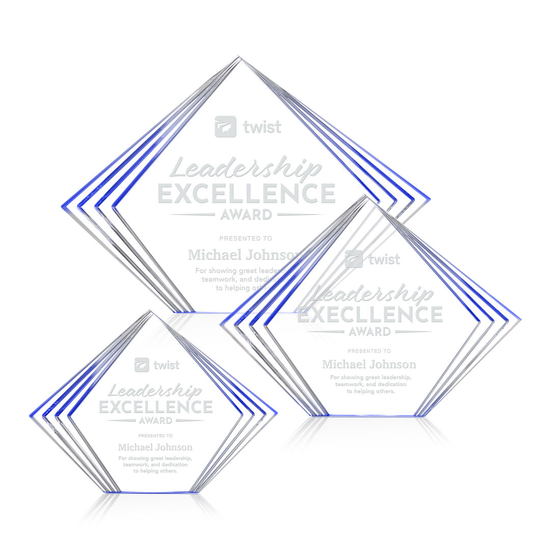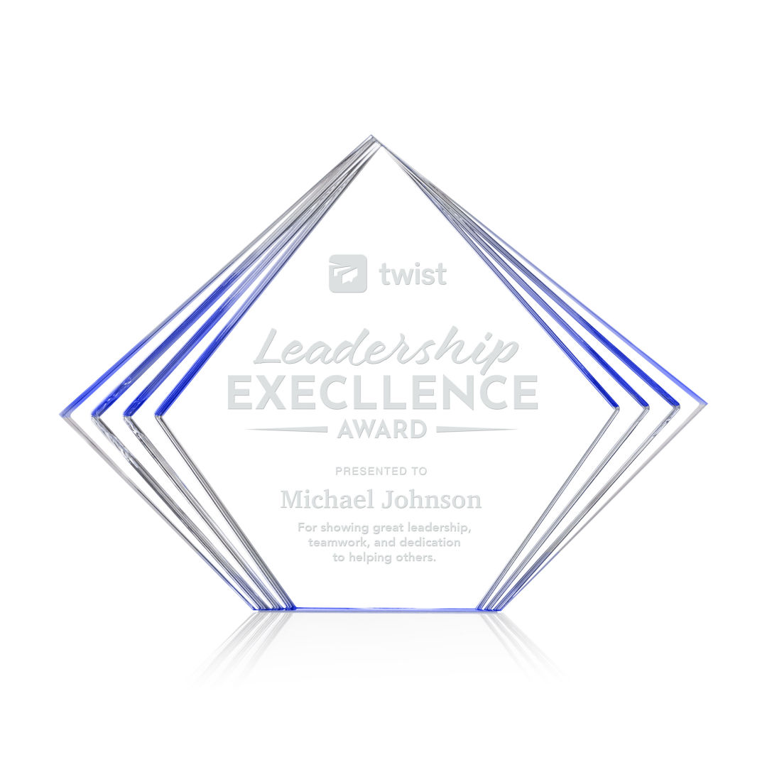 The Crawford Award is a sleek freestanding acrylic recognition piece featuring a modern diamond-shaped design with layered side accents that create depth and visual interest. Crafted from clear, high-quality acrylic, it offers a generous decorating area perfect for full-color graphics, logos, or personalized messages. Contemporary and versatile, the Crawford Award delivers a bold, eye-catching presentation ideal for celebrating excellence, achievement, and standout performance. 7.0″ W x 5.125″ H x 1.0″ D