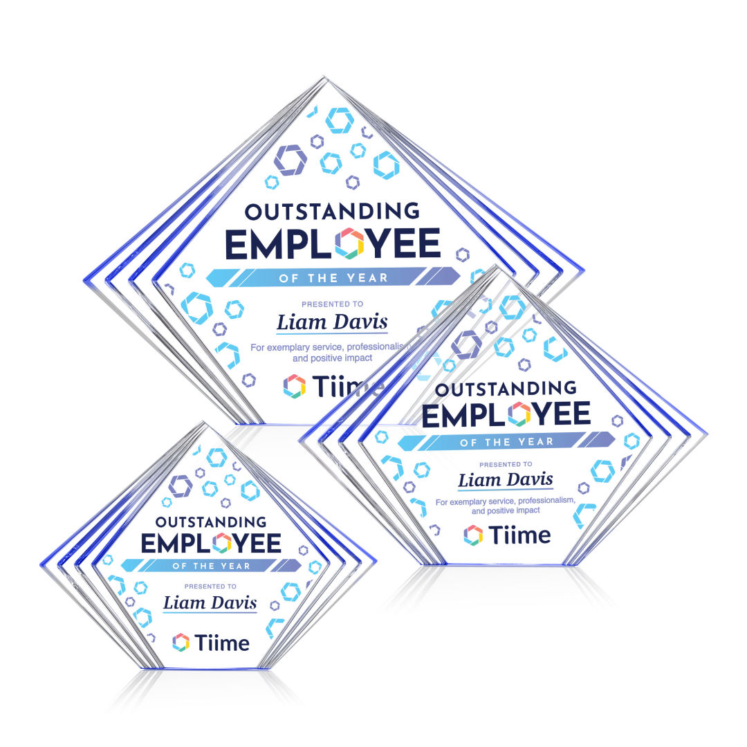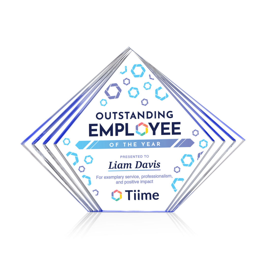 The Crawford VividPrint™ Award is a sleek freestanding acrylic recognition piece featuring a modern diamond-shaped design with layered side accents that create depth and visual interest. Crafted from clear, high-quality acrylic, it offers a generous decorating area perfect for full-color graphics, logos, or personalized messages. Contemporary and versatile, the Crawford Award delivers a bold, eye-catching presentation ideal for celebrating excellence, achievement, and standout performance. Bring your artwork to life with full-color VividPrint™! 7.0″ W x 5.125″ H x 1.0″ D