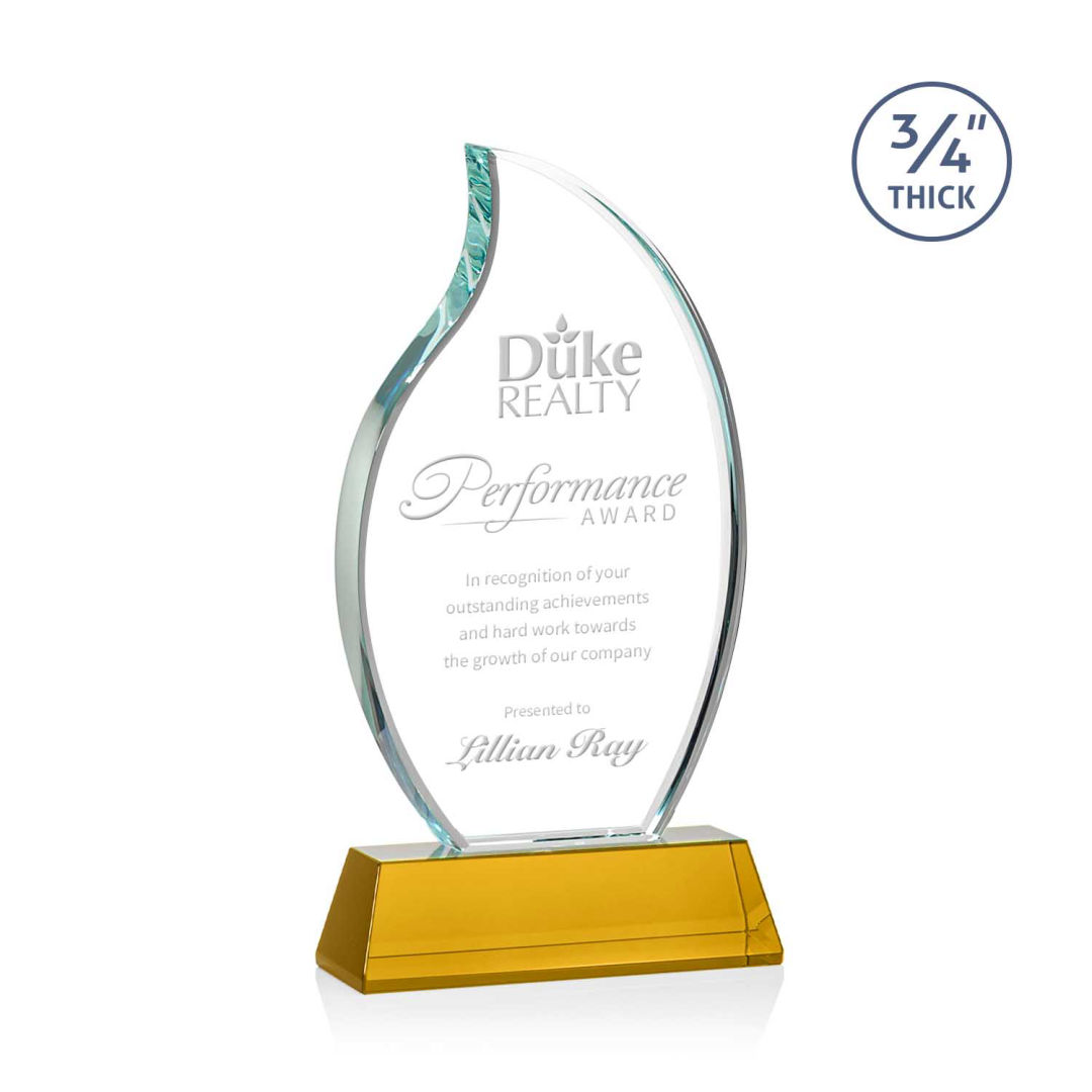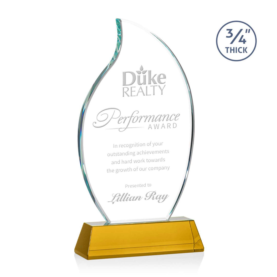 The Croydon award features an elegant 3/4″ thick Starfire Crystal flame to commemorate your achievement with an eternal symbol of greatness. Mounted on your choice of 8 sparkling colored Newhaven bases. Second position etch optional. 4.0″ W x 8.0″ H x 2.0″ D