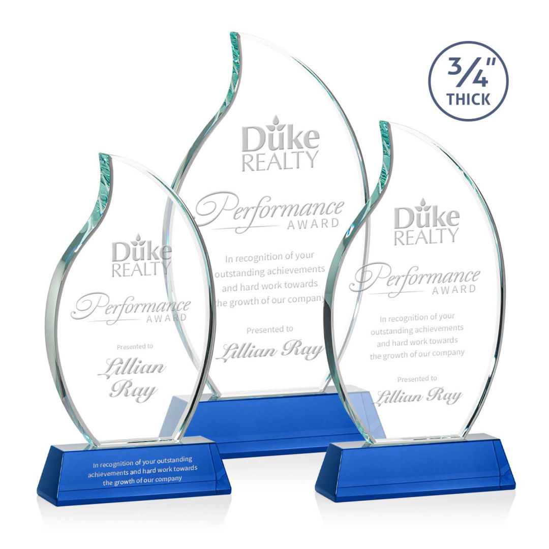 The Croydon award features an elegant 3/4″ thick Starfire Crystal flame to commemorate your achievement with an eternal symbol of greatness. Mounted on your choice of 8 sparkling colored Newhaven bases. Second position etch optional. 4.0″ W x 8.0″ H x 2.0″ D