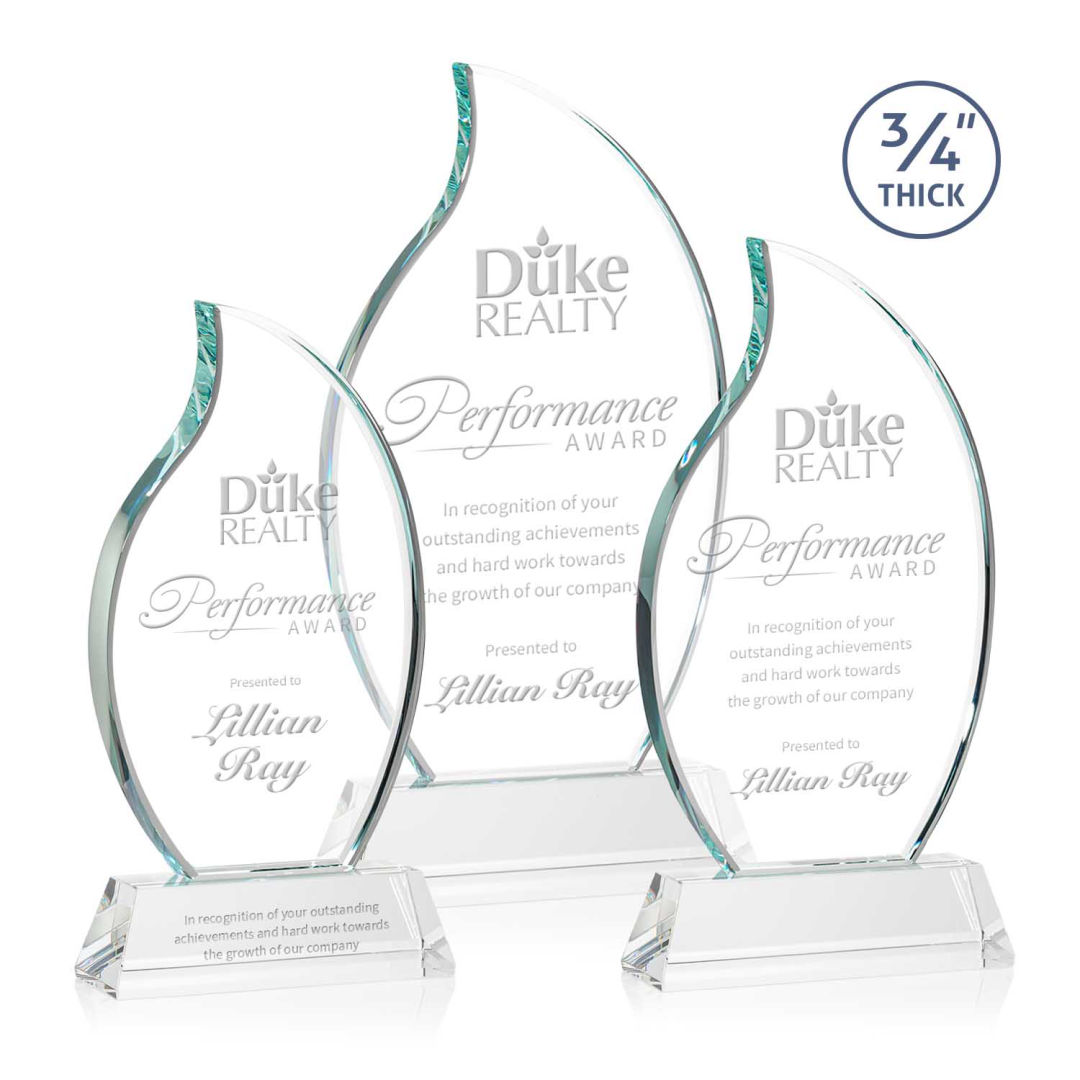 The Croydon award features an elegant 3/4″ thick Starfire Crystal flame to commemorate your achievement with an eternal symbol of greatness. Mounted on your choice of 8 sparkling colored Newhaven bases. Second position etch optional. 4.0″ W x 8.0″ H x 2.0″ D