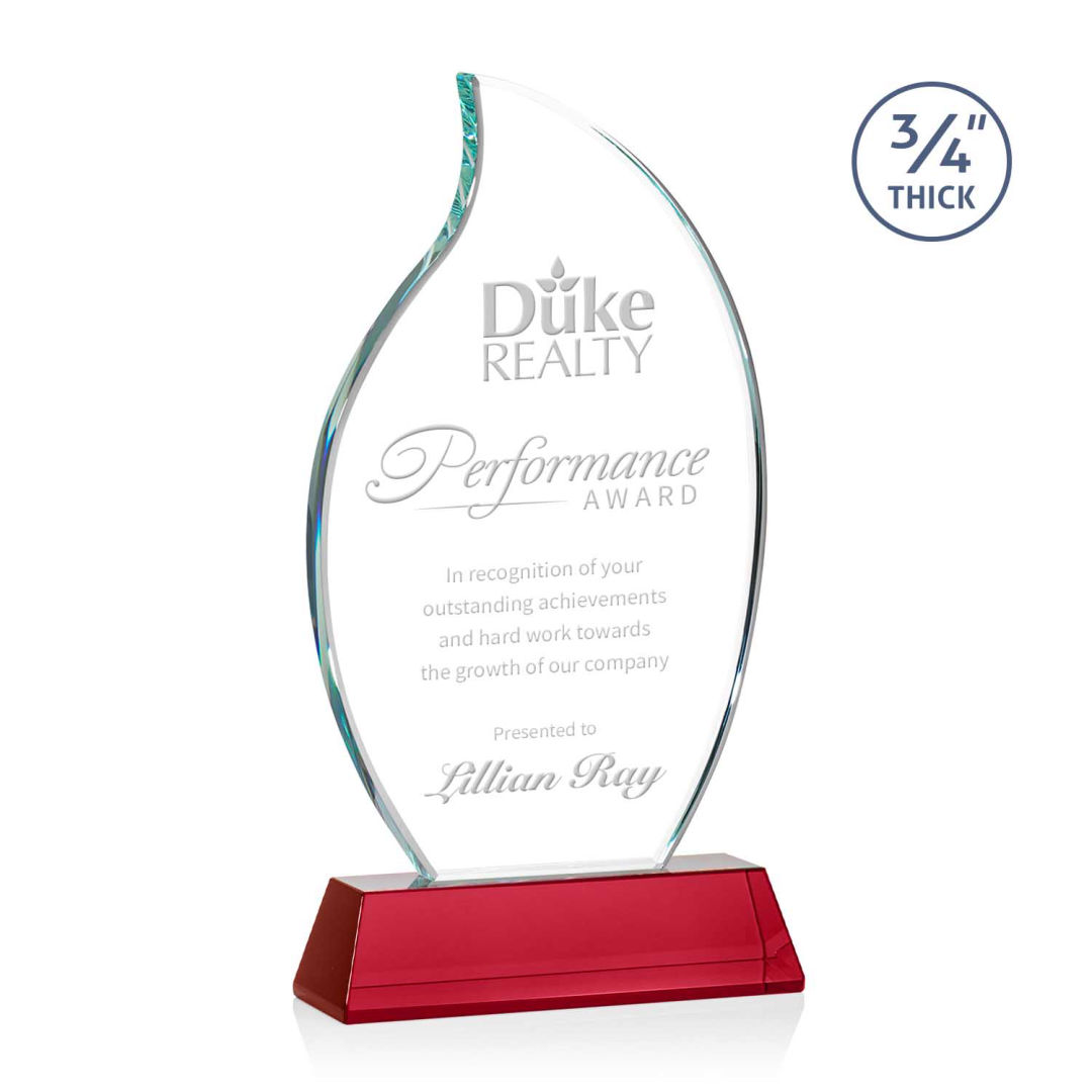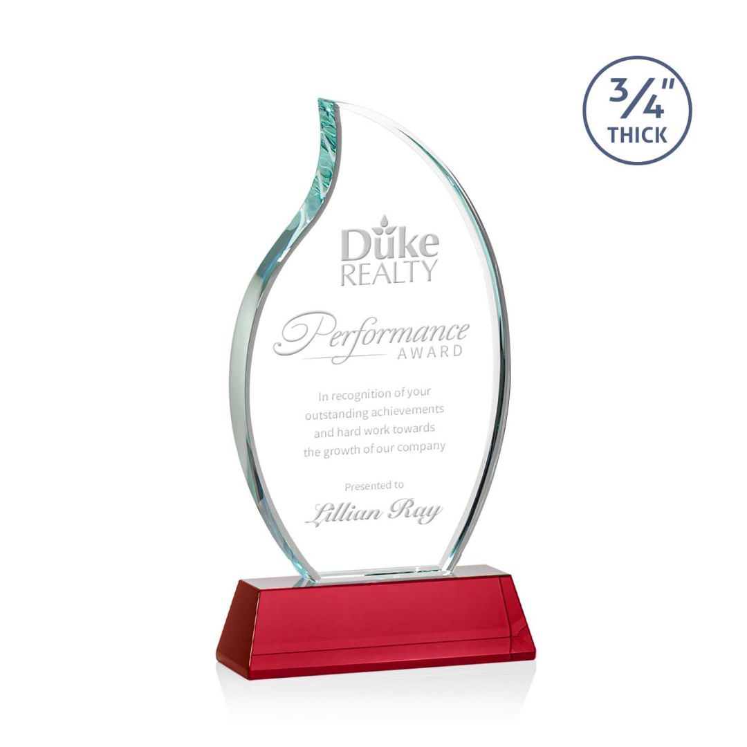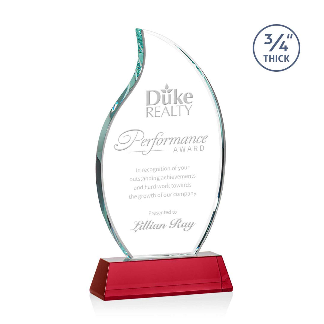 The Croydon award features an elegant 3/4″ thick Starfire Crystal flame to commemorate your achievement with an eternal symbol of greatness. Mounted on your choice of 8 sparkling colored Newhaven bases. Second position etch optional. 4.0″ W x 8.0″ H x 2.0″ D