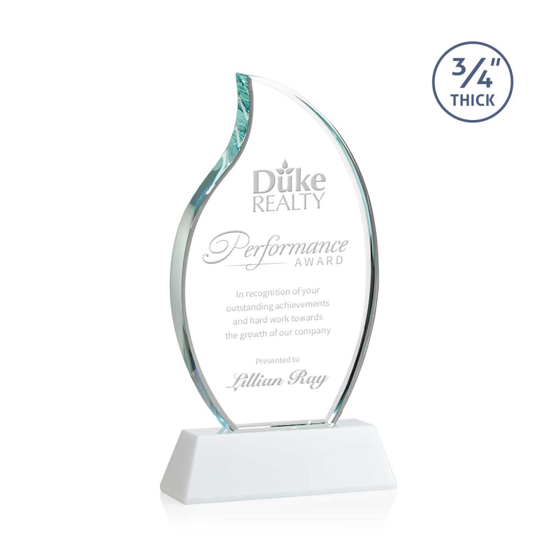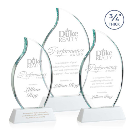 The Croydon award features an elegant 3/4″ thick Starfire Crystal flame to commemorate your achievement with an eternal symbol of greatness. Mounted on a sparkling white beveled Newhaven base. Second position etch optional. 4.0″ W x 8.0″ H x 2.0″ D