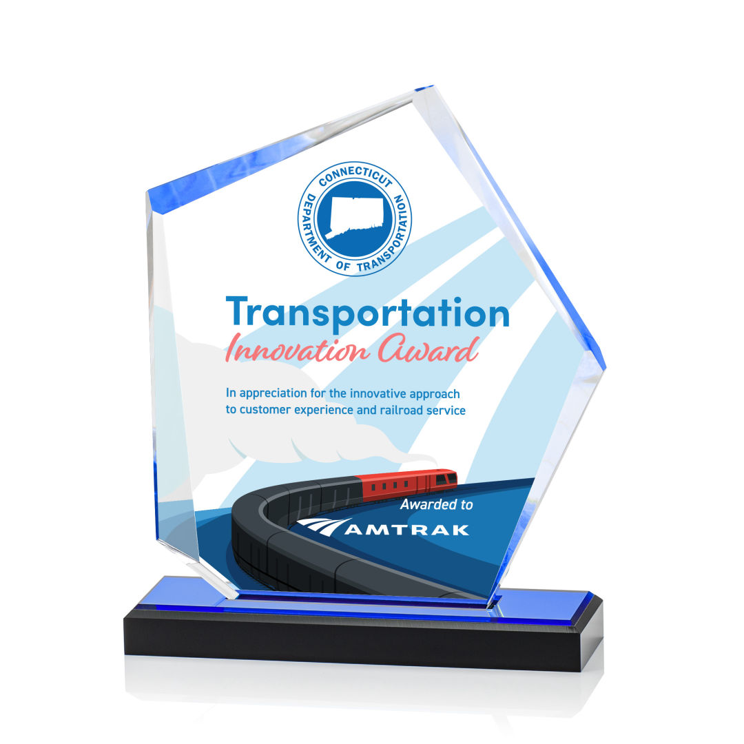 The Croydon award features an elegant 3/4″ thick Starfire Crystal flame to commemorate your achievement with an eternal symbol of greatness. Mounted on your choice of 8 sparkling colored bases. Second position etch optional. 4.0″ W x 7.25″ H x 3.0″ D