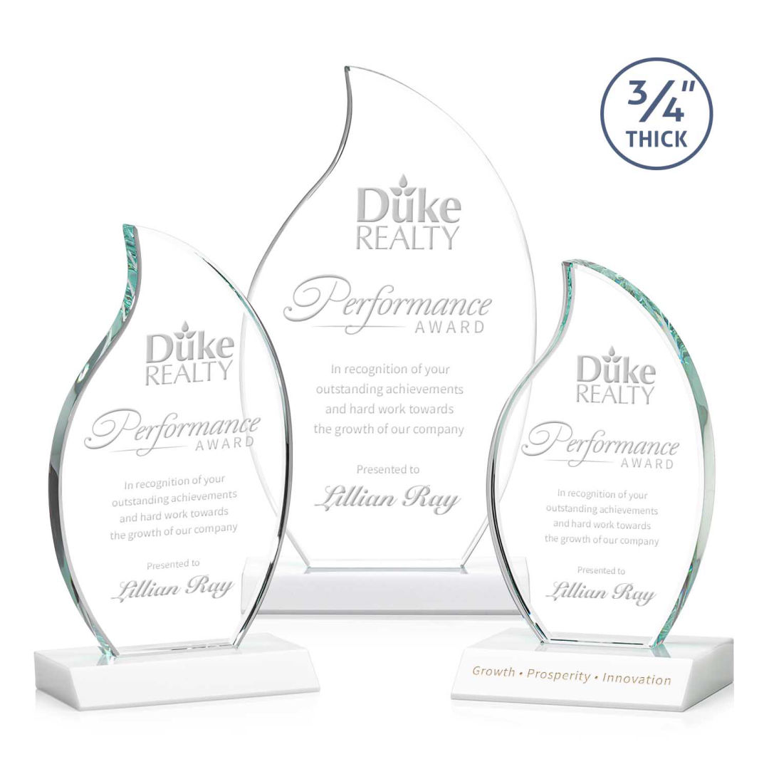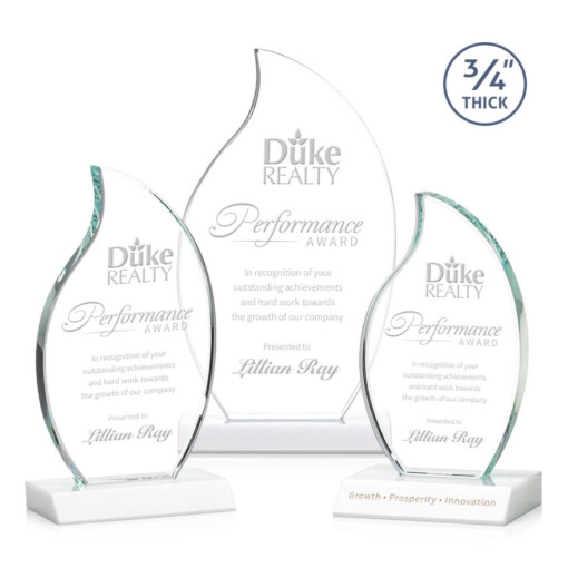 The Croydon award features an elegant 3/4″ thick Starfire Crystal flame to commemorate your achievement with an eternal symbol of greatness. Mounted on your choice of 8 sparkling colored bases. Second position etch optional. 4.0″ W x 7.25″ H x 3.0″ D