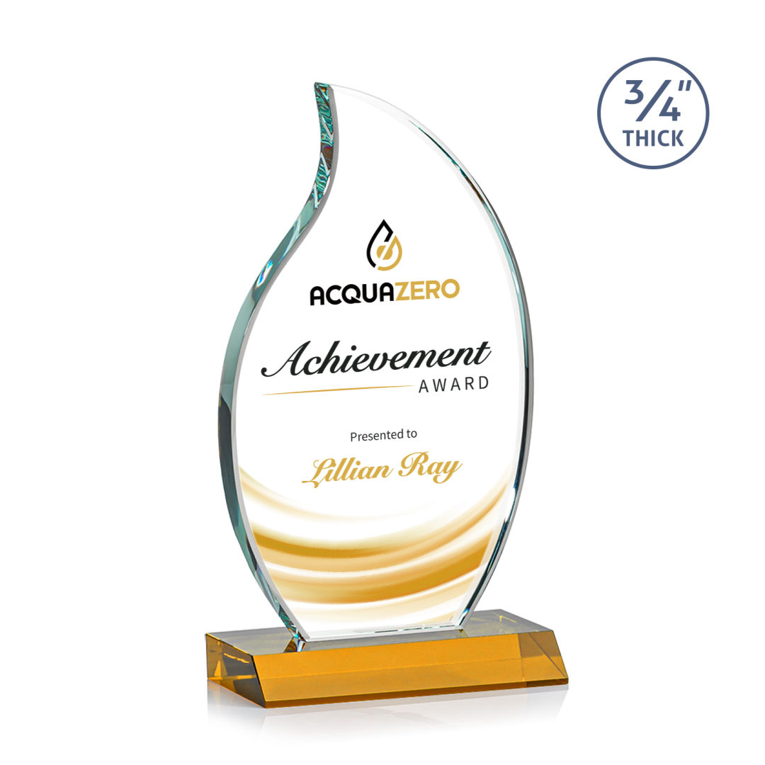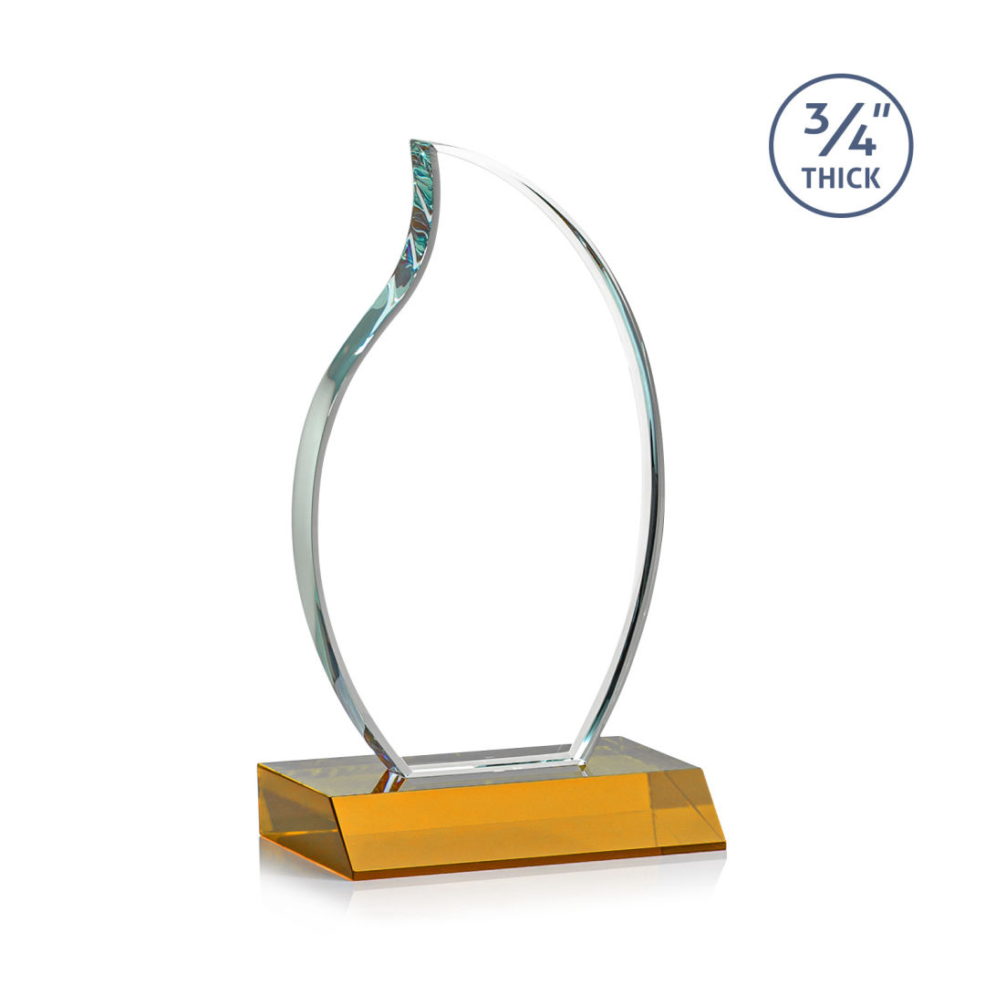 The Croydon VividPrint™ award features an elegant 3/4″ thick Starfire Crystal flame to commemorate your achievement with an eternal symbol of greatness. Mounted on your choice of 8 sparkling colored bases. Second position etch optional. 4.0″ W x 7.25″ H x 3.0″ D