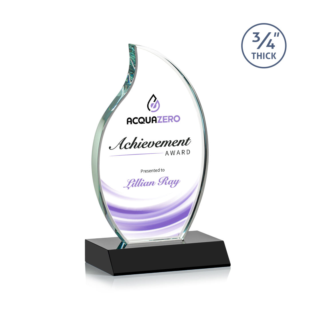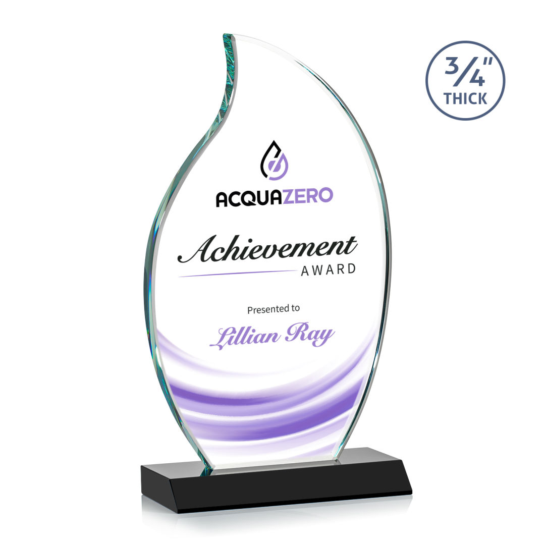 The Croydon VividPrint™ award features an elegant 3/4″ thick Starfire Crystal flame to commemorate your achievement with an eternal symbol of greatness. Mounted on your choice of 8 sparkling colored bases. Second position etch optional. 4.0″ W x 7.25″ H x 3.0″ D