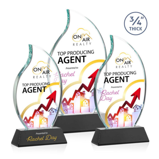The Croydon VividPrint™ award features an elegant 3/4″ thick Starfire Crystal flame to commemorate your achievement with an eternal symbol of greatness. Mounted on your choice of 8 sparkling Newhaven colored bases. Second position etch optional. 4.0″ W x 8.0″ H x 2.0″ D